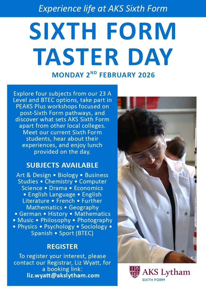 Join us for our Sixth Form Taster Session on Monday 2nd February 2026.