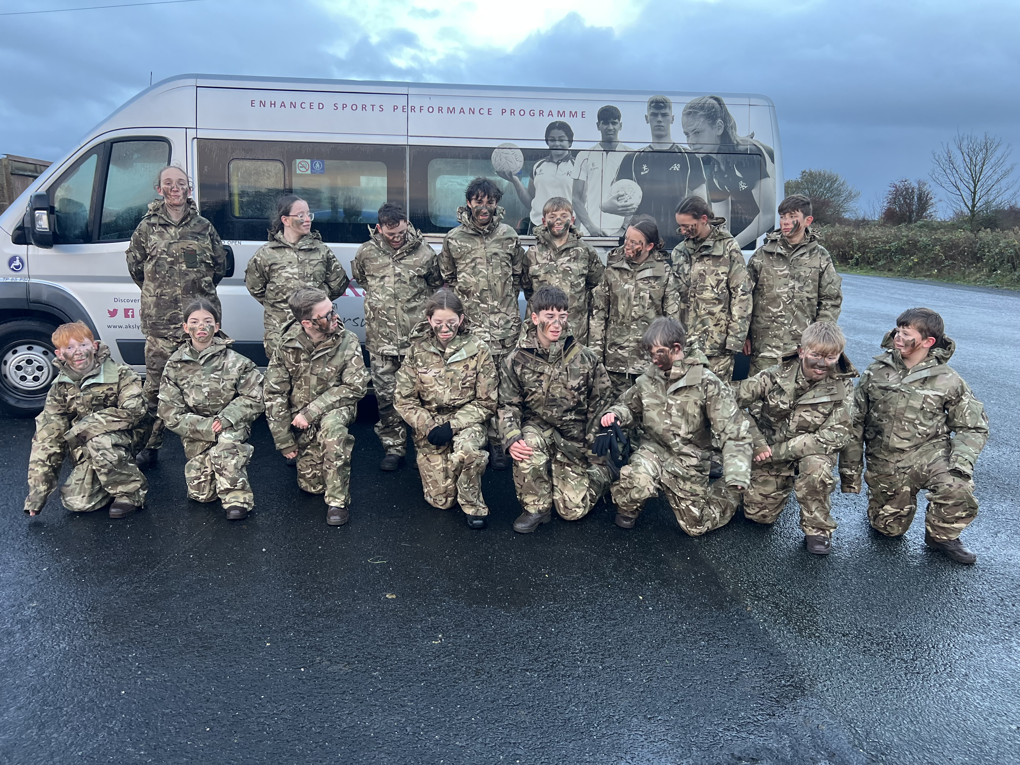 Last week, 16 AKS cadets took part in a Field Day at the Weeton Barracks Training Area, joining cadets from Kirkham Grammar and Carr Hill High School for a full day of training and outdoor challenges. Despite the wet and cold November weather, all cadets embraced the experience with enthusiasm and resilience.