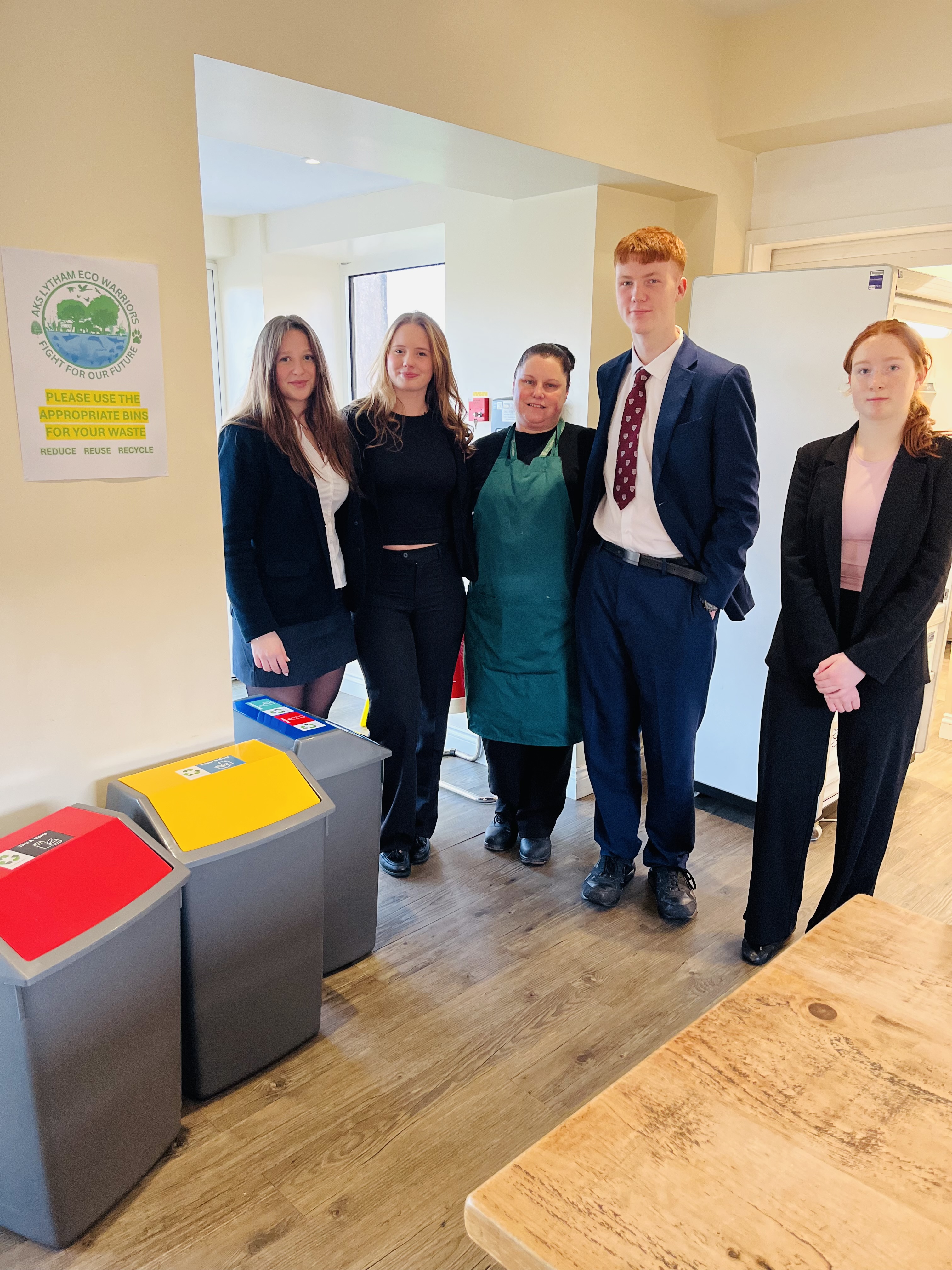 Sophia, Esther, Lily, Cody (our newest member), and Mr Collings met with Mr Shepherd, Head of Catering, and Kim, our pavilion superstar, to formally hand over the bins and continue their drive to champion the important message of Reduce, Reuse, Recycle within AKS and beyond.