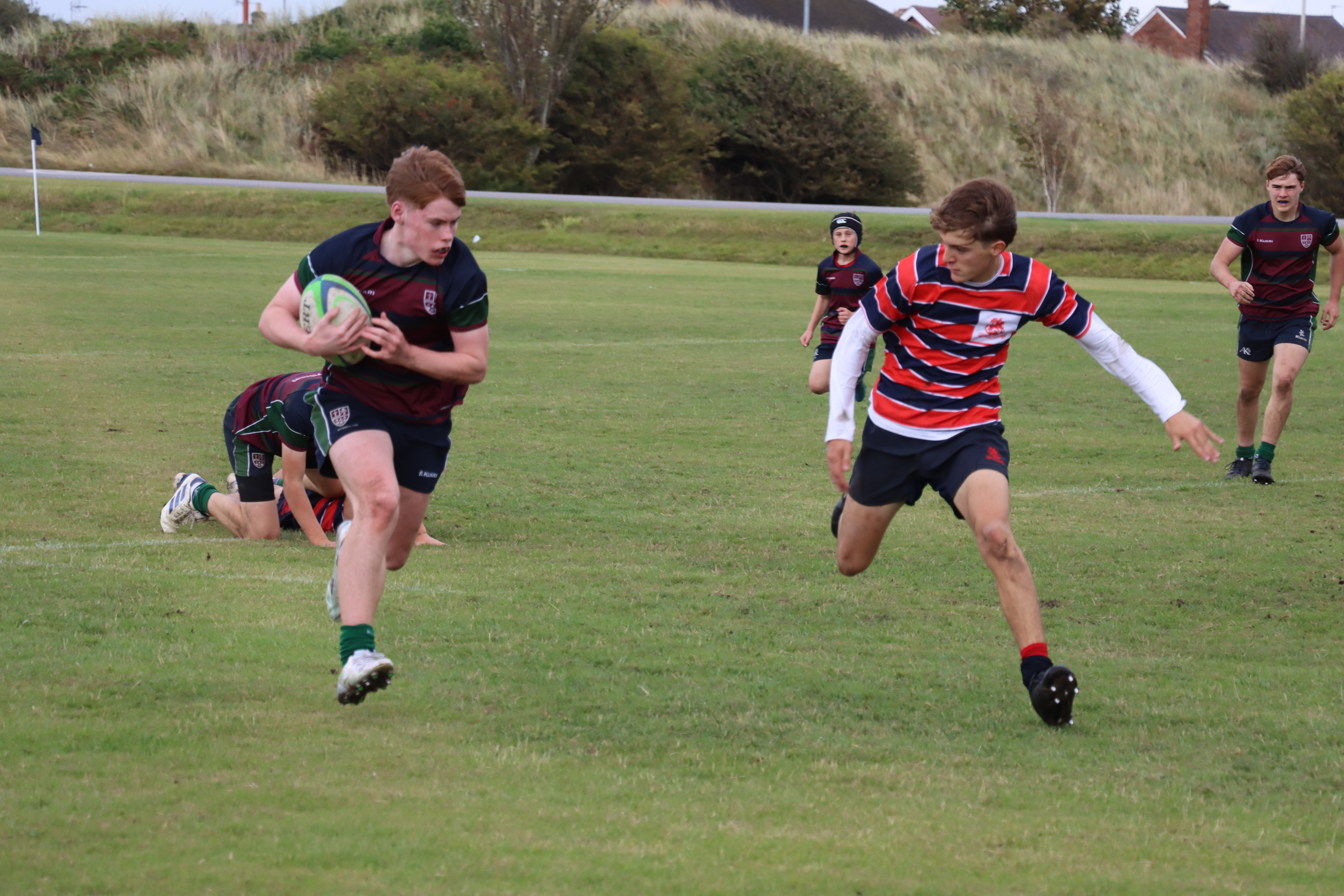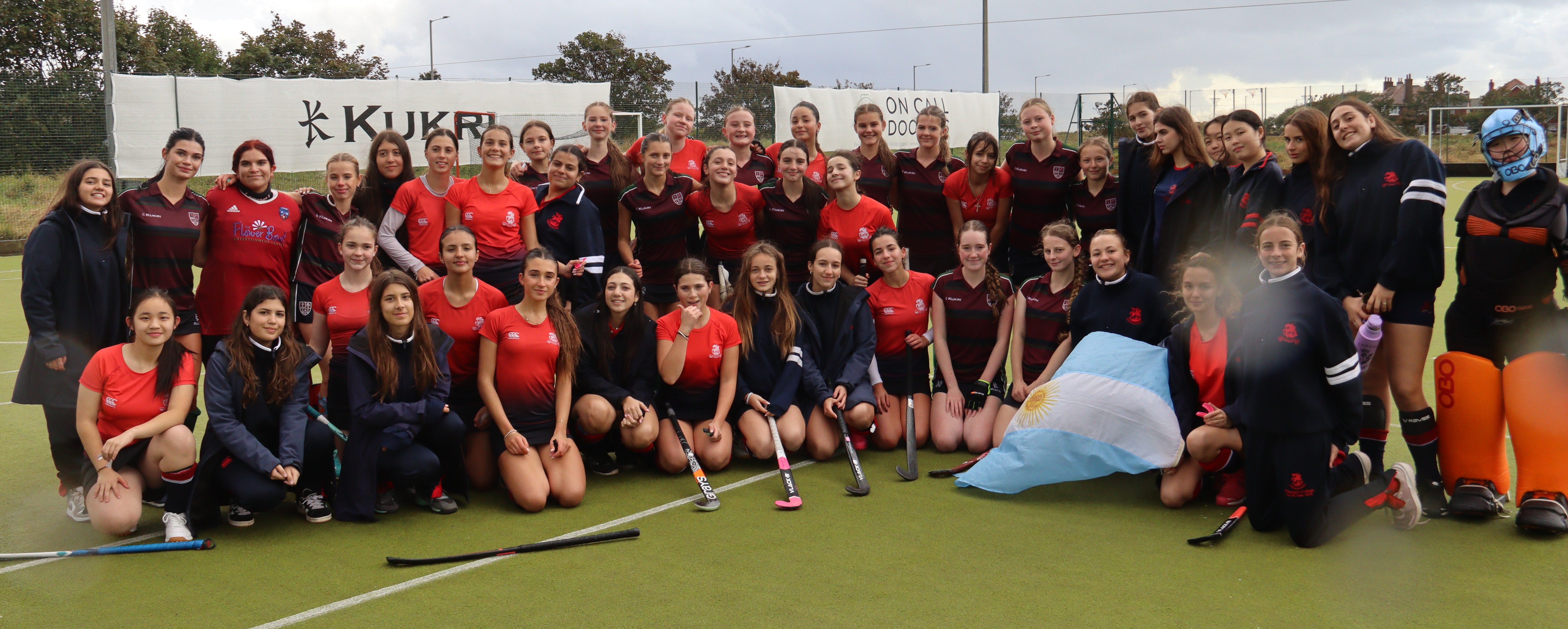 Last Thursday we were delighted to host St George’s College from Quilmes, Argentina, for a fantastic series of hockey and rugby matches that celebrated both competition and friendship between our schools. The fixture was particularly special as it followed on from AKS’s memorable rugby tour to Argentina in July, when our students visited St George’s and experienced their warm hospitality. The day was made even more meaningful by the presence of alumnus Jon Mellor (KES 1960–1970) and his wife Wendy. Now living in St Bees, Jon returned to AKS to take a trip down memory lane, visiting his old classroom and the OAKS Hall, known to KES alumni as Big School. We also shared with Jon a copy of his original student file, which was a special highlight of the visit. In a wonderful coincidence, Jon’s son Allan Mellor, currently Deputy Head at St George’s College, was also at AKS with the touring party. Father and son were able to meet on campus, further underlining the deep and enduring connections between our schools. Jon himself once taught at St George’s College, and with Allan now serving as Deputy Head there, this fixture became a true celebration of friendship and shared history across continents. That spirit of friendship carried onto the pitches despite some very British weather. Driving rain, strong winds and even hail could not dampen the enthusiasm of players or supporters as the visiting teams faced our U15 rugby and hockey sides. The rugby match began as a tight contest, but relentless pressure from St George’s, helped by a fierce headwind that pinned AKS in their own 22, brought three early tries. AKS responded with a well-worked score from Harry M after an excellent lineout catch and drive, yet the worsening conditions added further challenge. By the final whistle the visitors had claimed five tries to one, but both sides shared smiles and stories over match tea, with captains and coaches exchanging small gifts in recognition of a game played in the best possible spirit. Meanwhile the U15 hockey teams delivered equally spirited performances. The B team recovered from a slow start that saw two quick St George’s goals, growing in confidence as Isobelle C, Natalie H and Lauren A linked play effectively. Defensive grit from Katie D and Casey Mc, along with outstanding saves from Kathryn S, kept the second half scoreless for an encouraging 0–2 result. The A team endured the heaviest hail showers of the day and an early goal from the visitors, but responded superbly. Lauren M anchored the defence while Isla C’s surging runs created chances, and a spectacular reverse-stick effort from Camilla W rattled the crossbar. Despite sustained late pressure, AKS could not find the equaliser and the match finished narrowly 0–1. Though the scoreboard favoured St George’s, the occasion was defined by camaraderie and mutual respect.