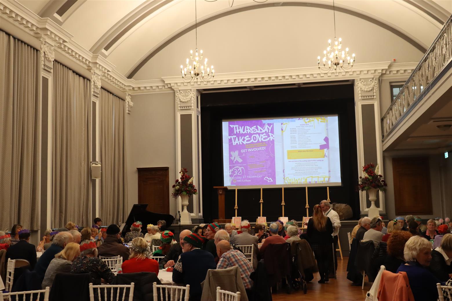 This event was followed by 100 members of JGF visiting the school for a Christmas fancy afternoon tea. This has developed into a great couple of hours entertainment, with singing from ‘Sweeney Todd’ including a show-stopping duet. Crackers were pulled, the parcel was passed and a beetle was driven.