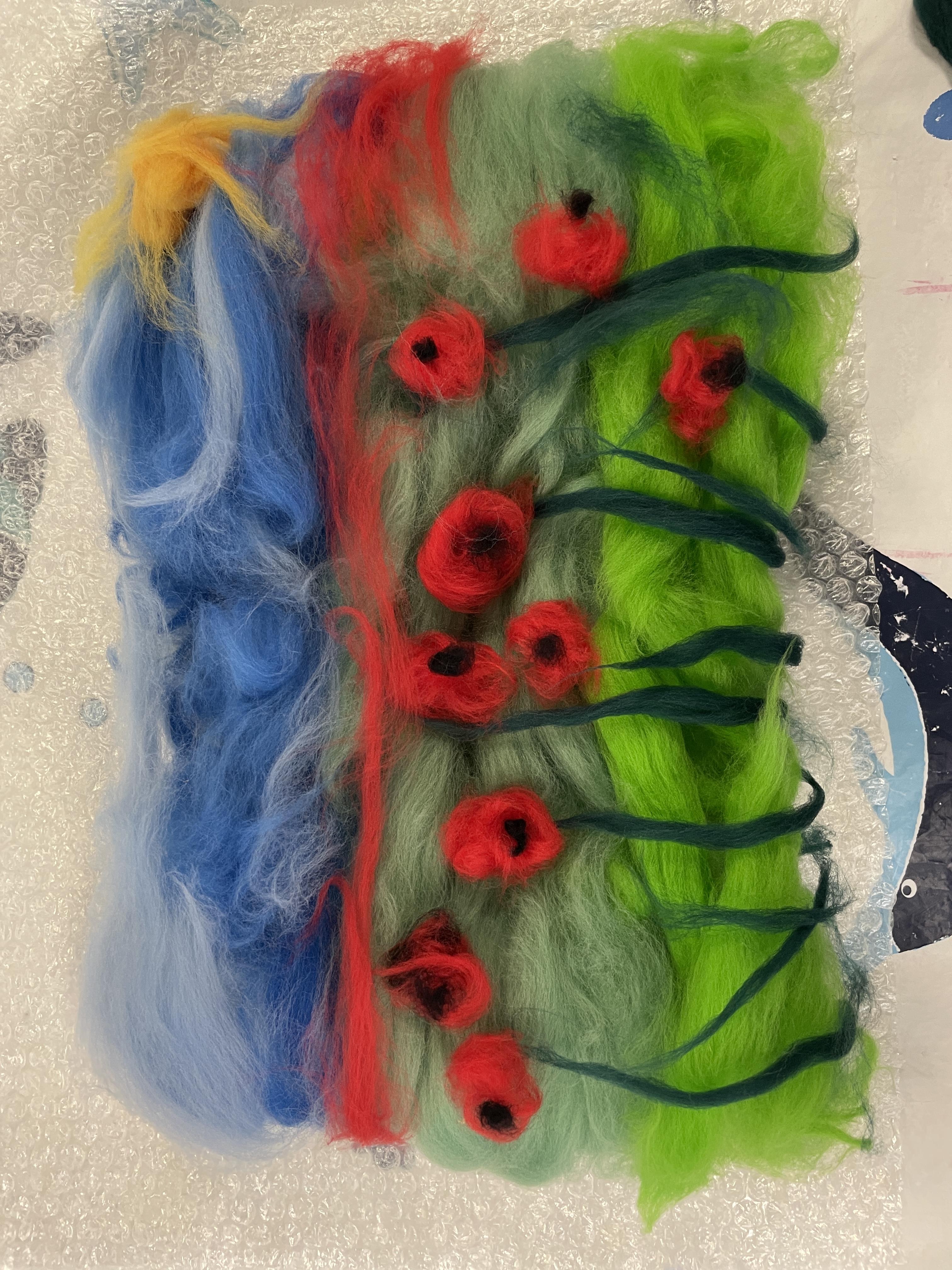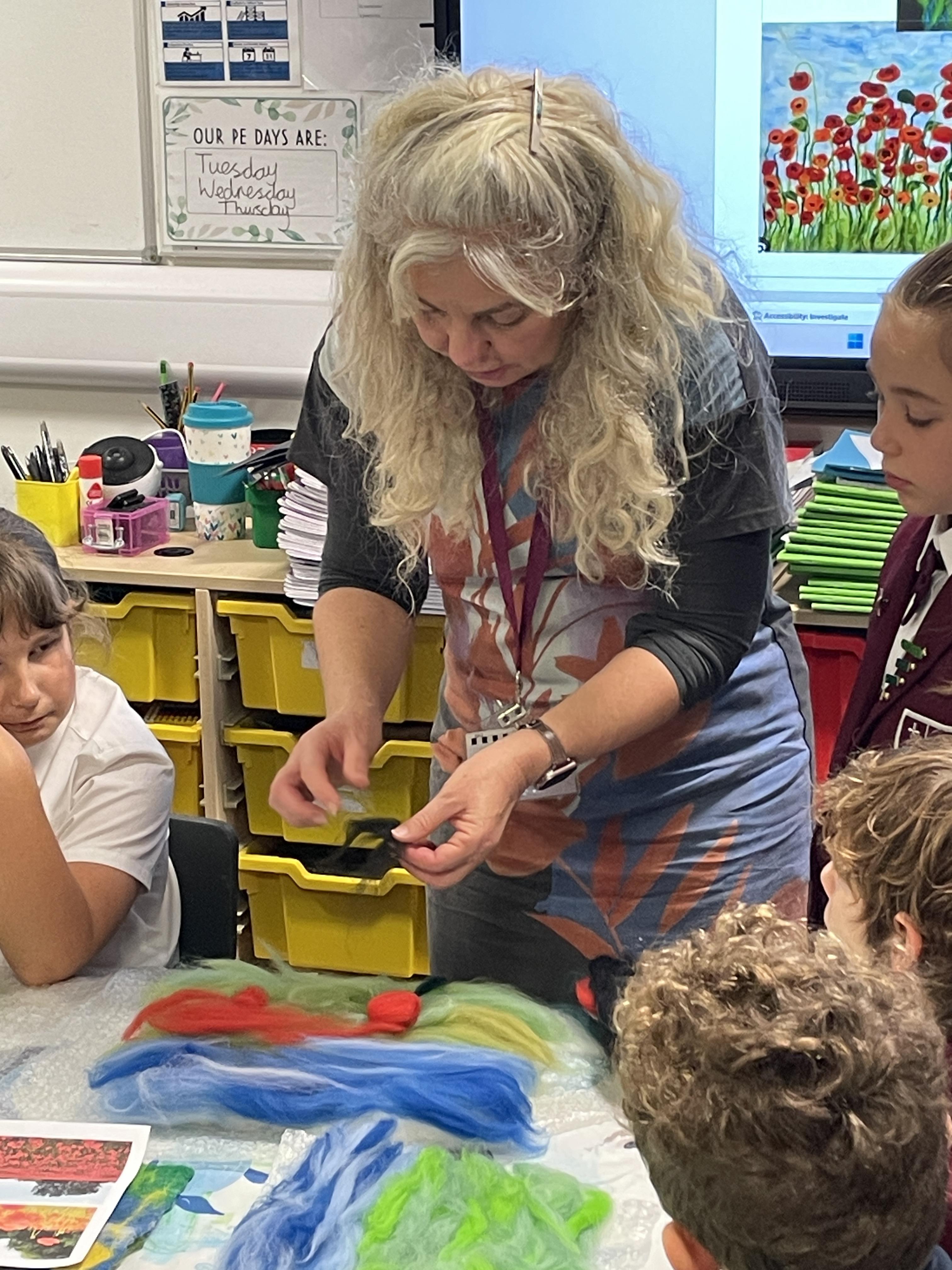 Year 4 took inspiration from fields of poppies, which linked well to their recent work on Remembrance.