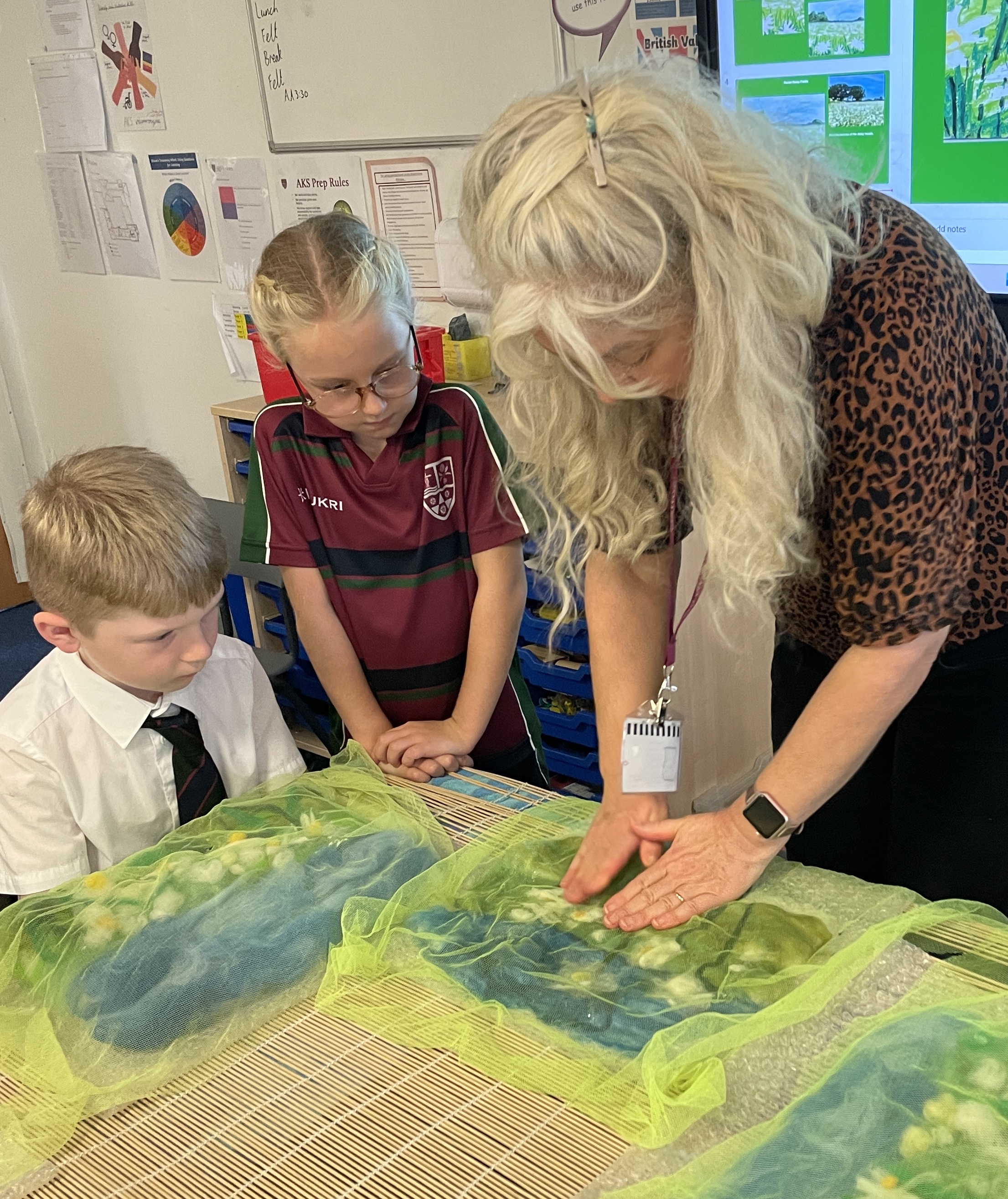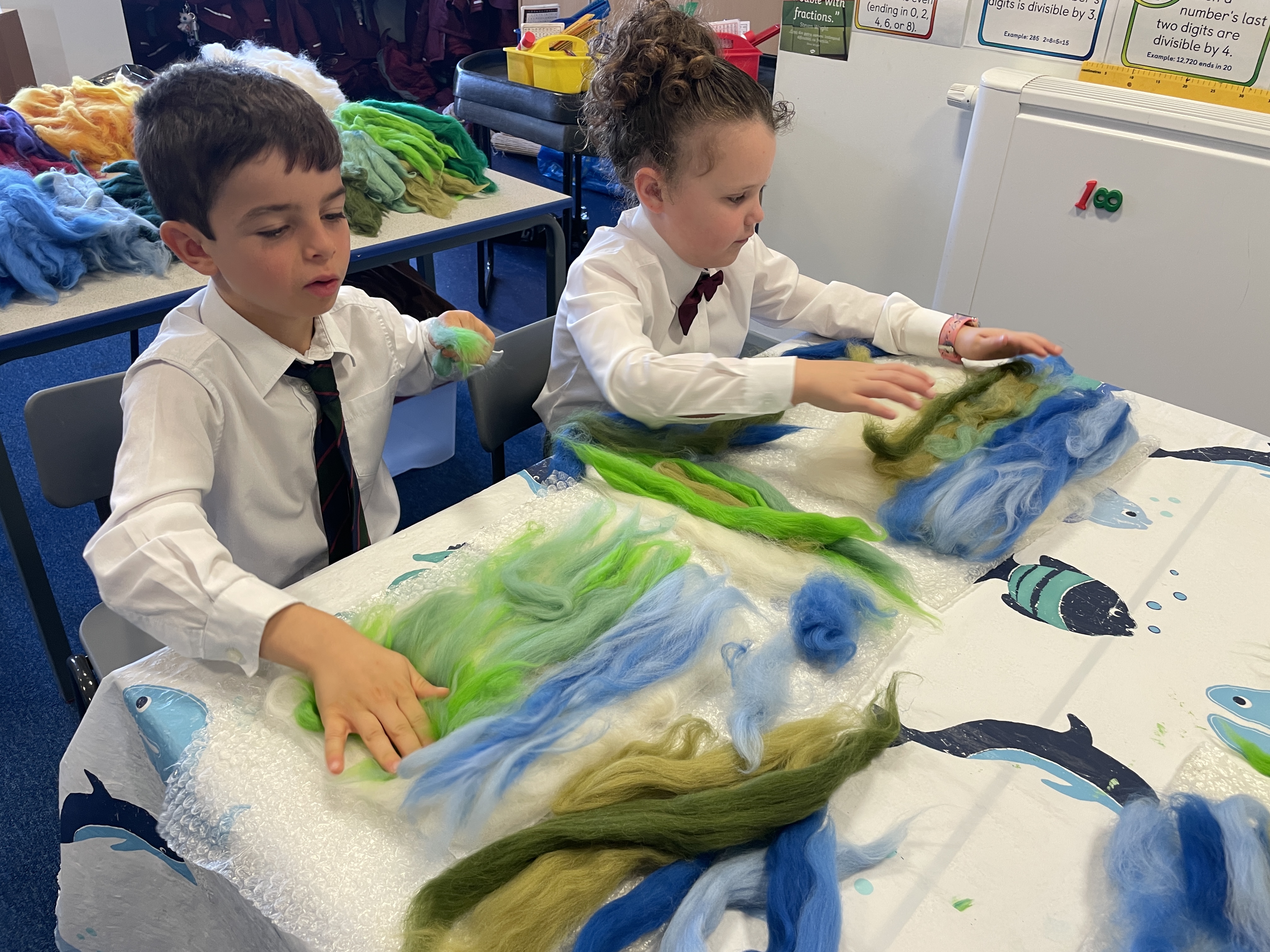 Year 5 and Year 6 worked together to create beautiful felted scenes inspired by bluebell woods.