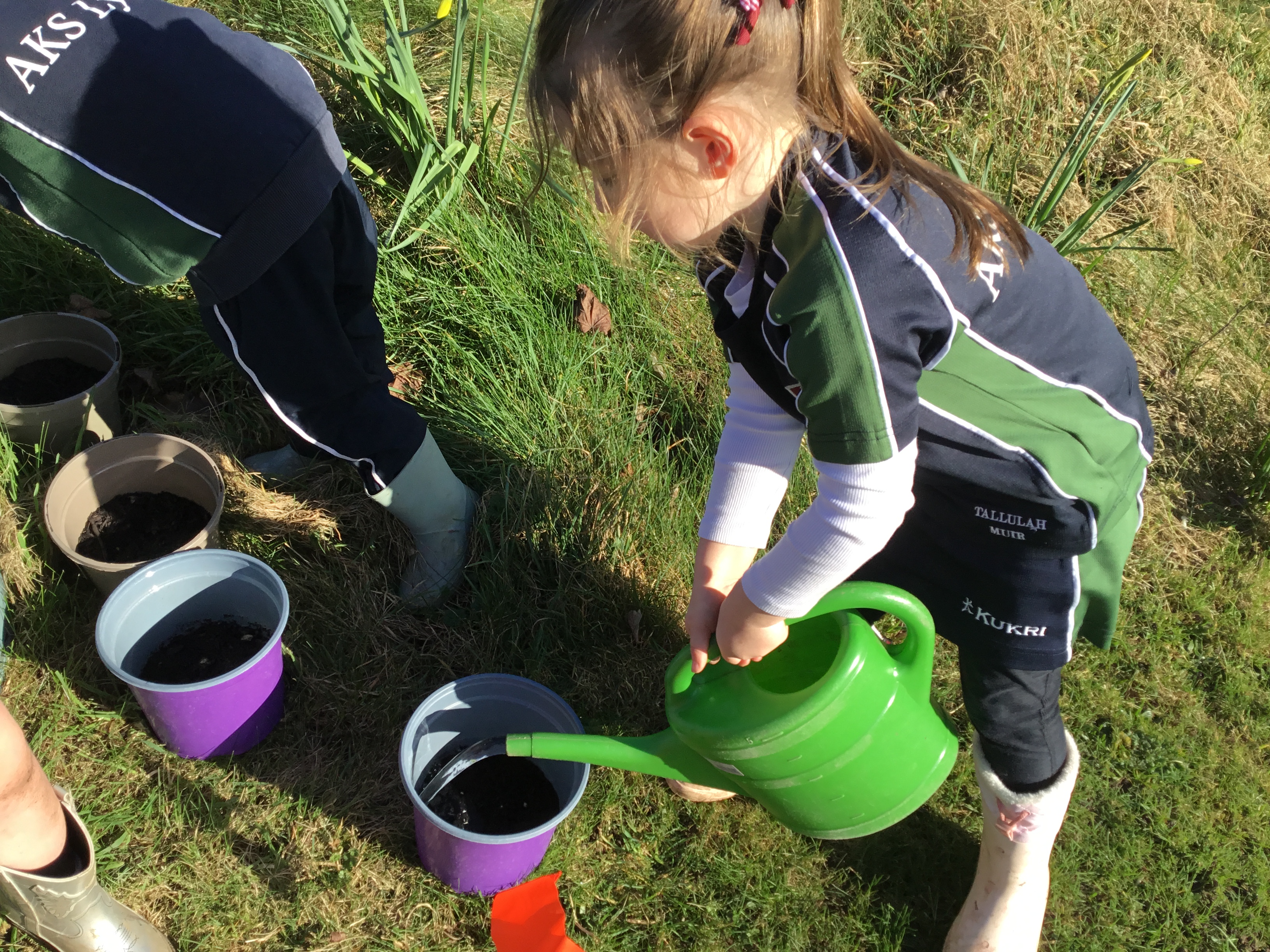 Reception children got their fingers green by exploring what plants need to grow. They examined daffodils and bulbs, and planted their own bulbs in soil, carefully watering them.