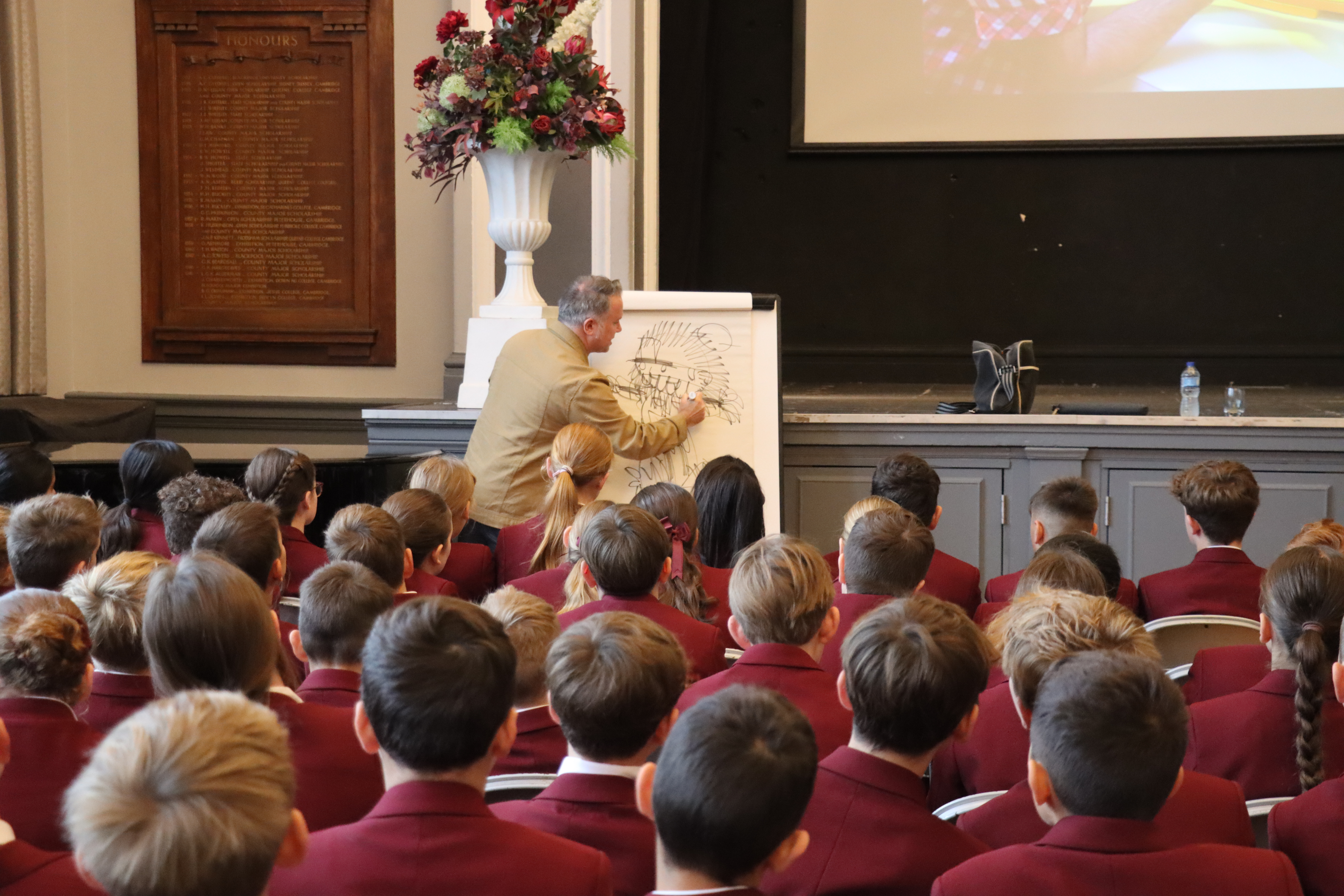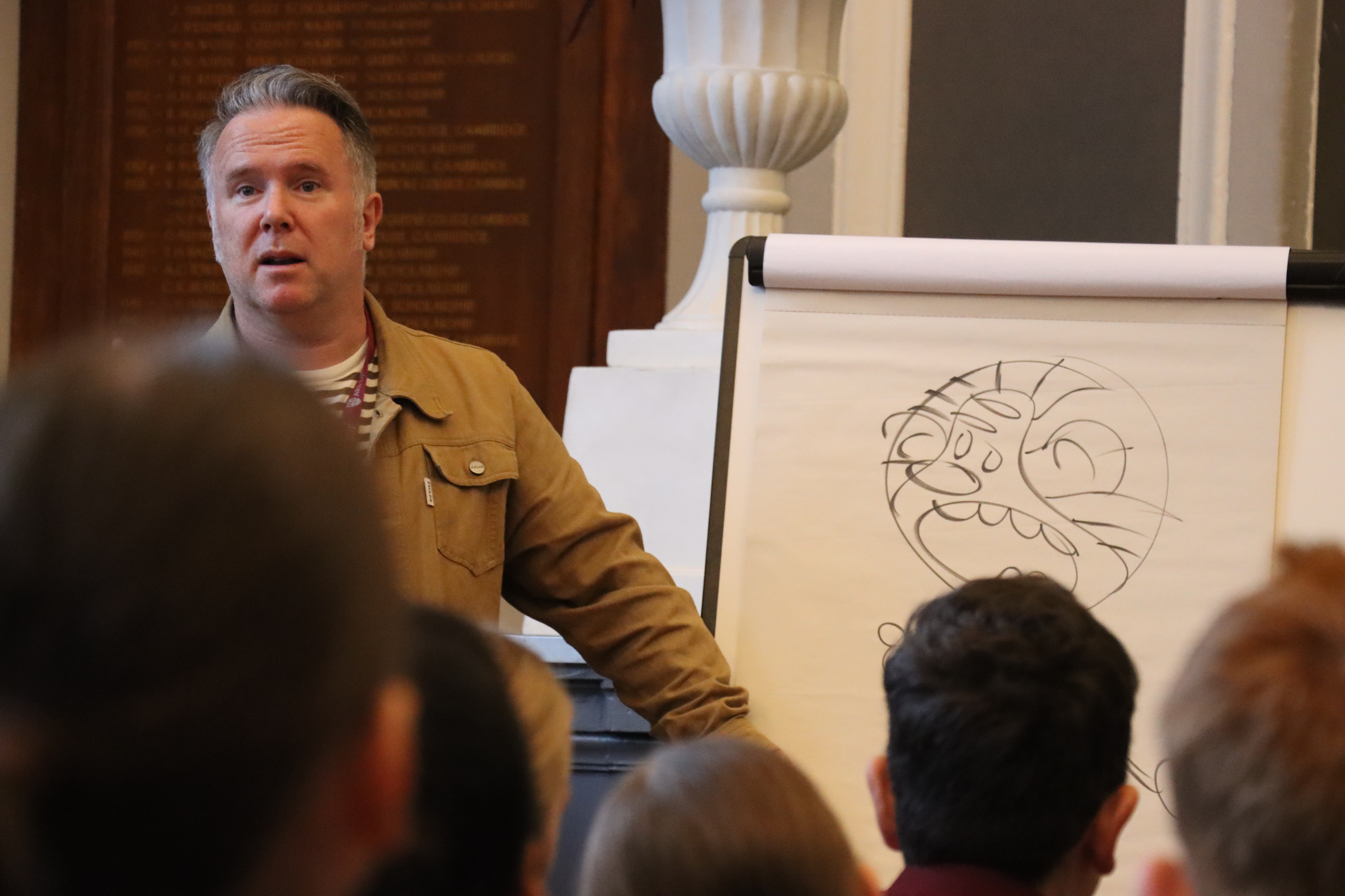 On Mondayr, students in Years 7 and 8 enjoyed a memorable visit from Curtis Jobling, celebrated author, illustrator and animation creator. Curtis is the creative force behind some of the UK’s best loved children’s shows including the BAFTA-winning Bob the Builder, Frankenstein’s Cat, and Raa Raa the Noisy Lion. He has also written and illustrated numerous picture books and published eleven novels for older readers, most notably the acclaimed Wereworld series, now adapted into the new Netflix animated show Wolf King.