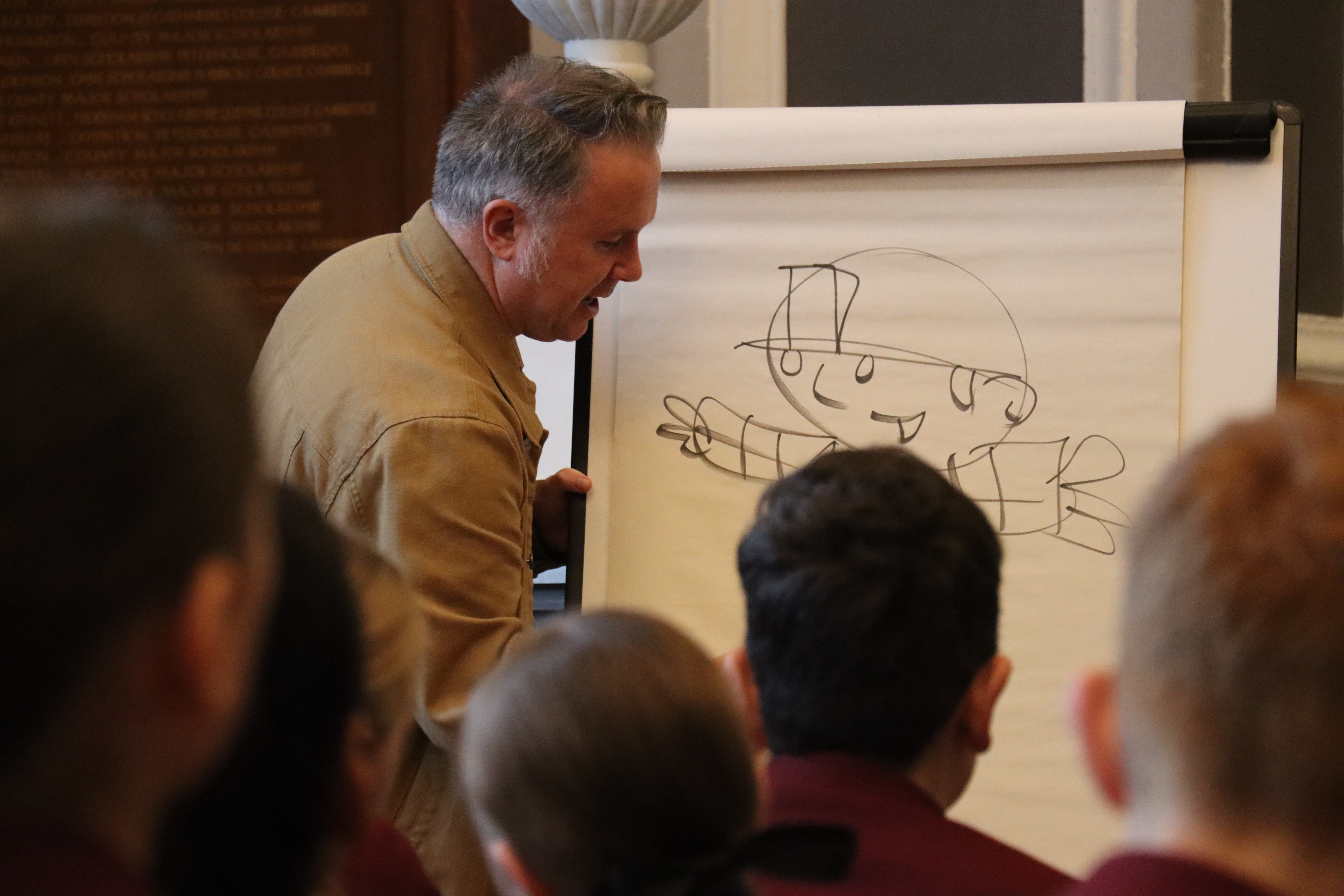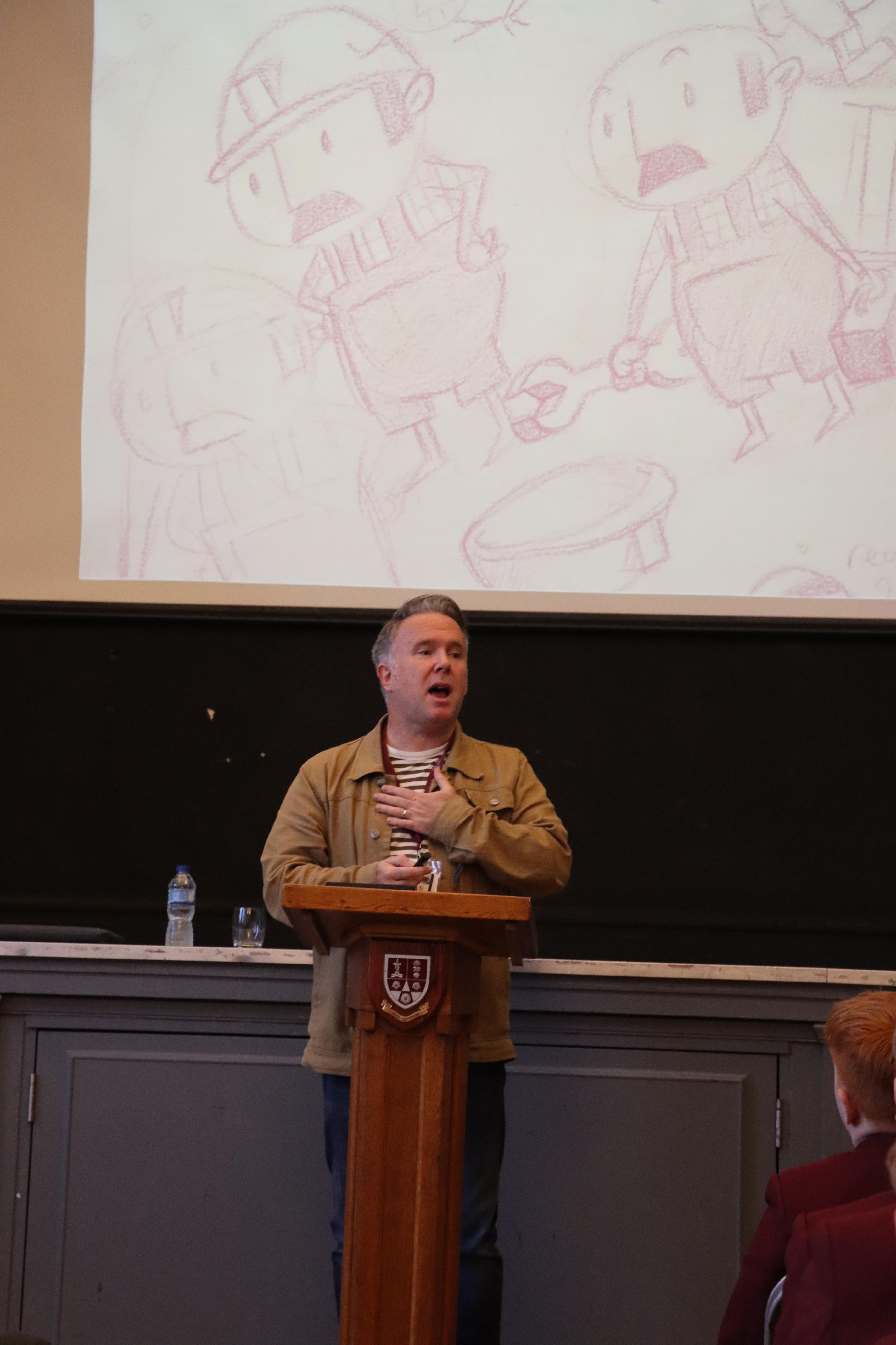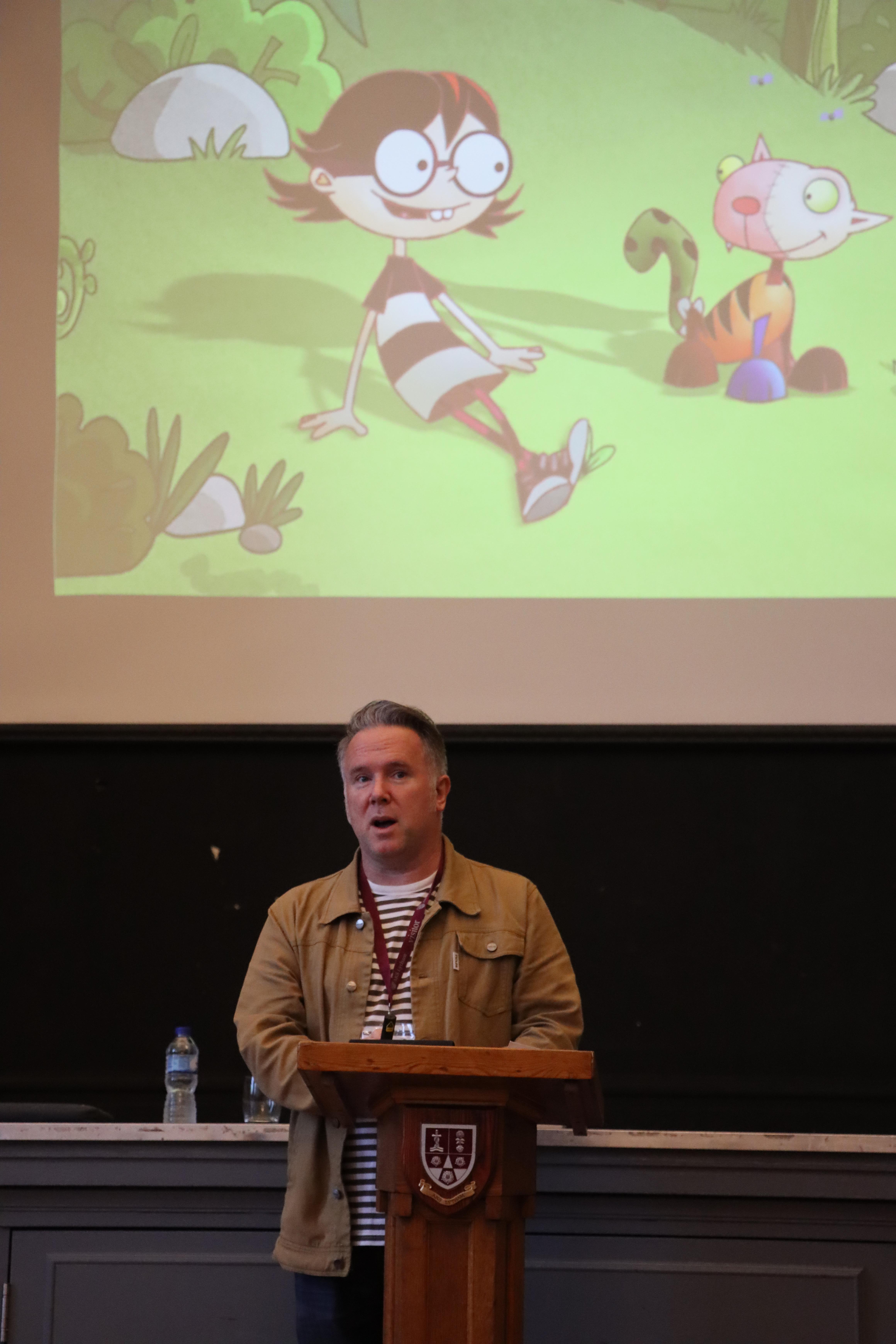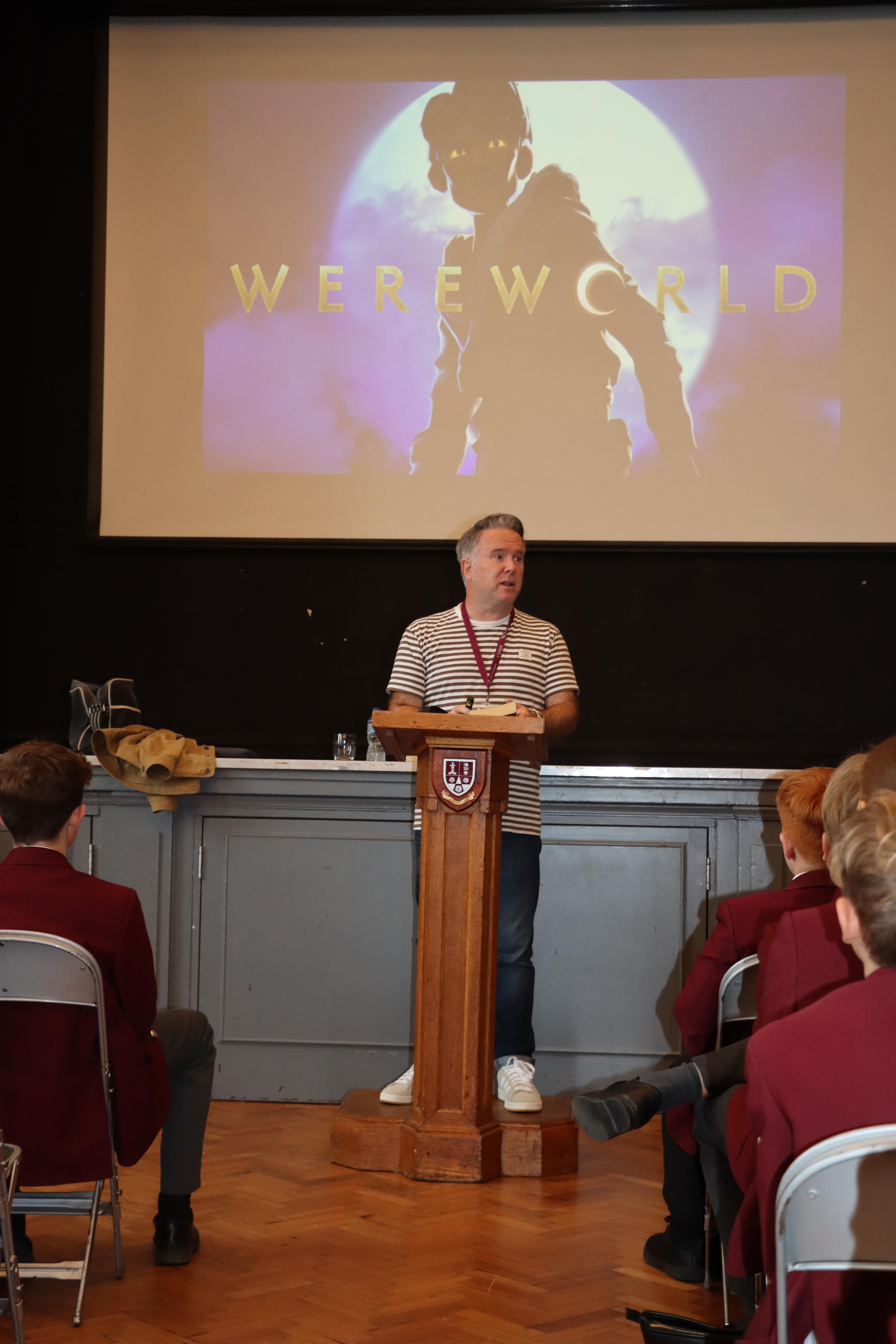 On Monday, students in Years 7 and 8 enjoyed a memorable visit from Curtis Jobling, celebrated author, illustrator and animation creator. Curtis is the creative force behind some of the UK’s best loved children’s shows including the BAFTA-winning Bob the Builder, Frankenstein’s Cat, and Raa Raa the Noisy Lion. He has also written and illustrated numerous picture books and published eleven novels for older readers, most notably the acclaimed Wereworld series, now adapted into the new Netflix animated show Wolf King.