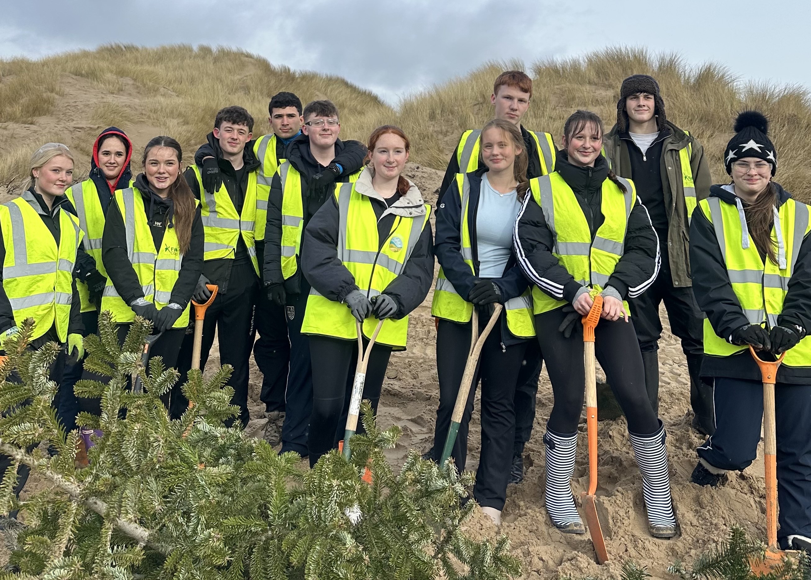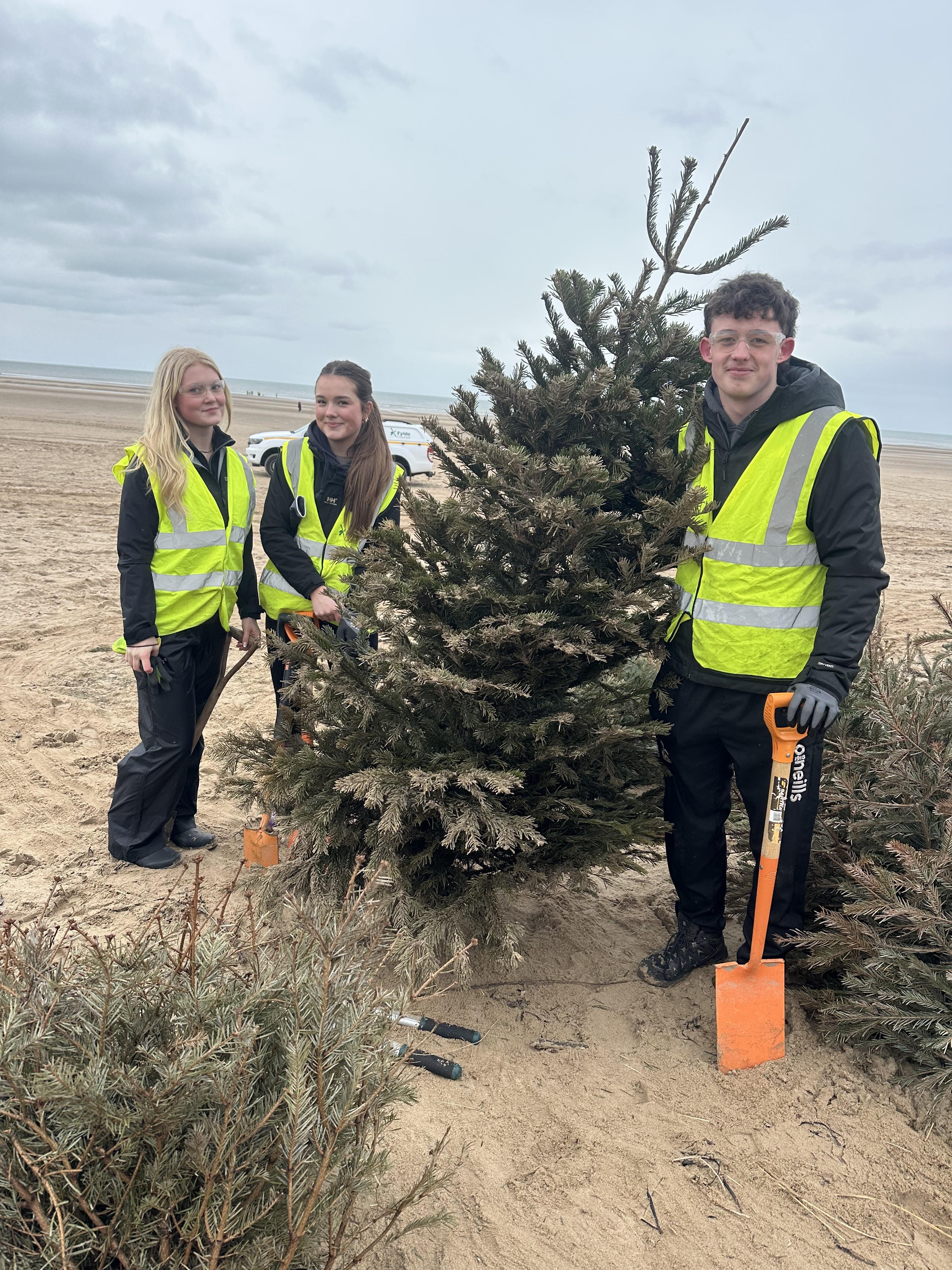 As part of the initiative, students helped extend the line of the sand dunes using recycled Christmas trees, an innovative and sustainable method that encourages sand deposition and stabilises the shoreline. By positioning the trees strategically, the project helps trap blowing sand, gradually building and reinforcing the dunes to improve protection for Lytham St Annes.