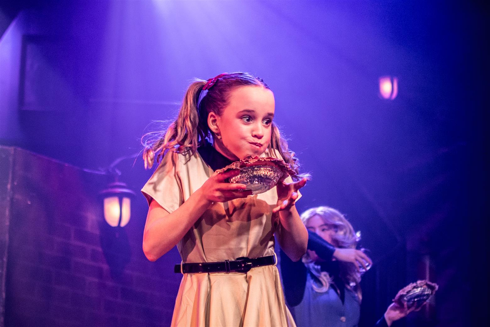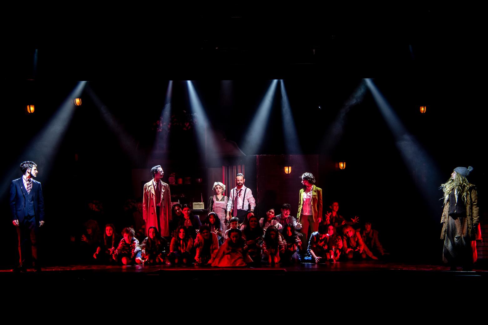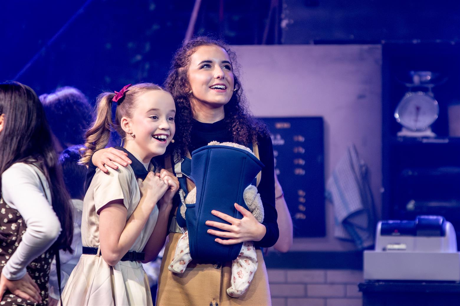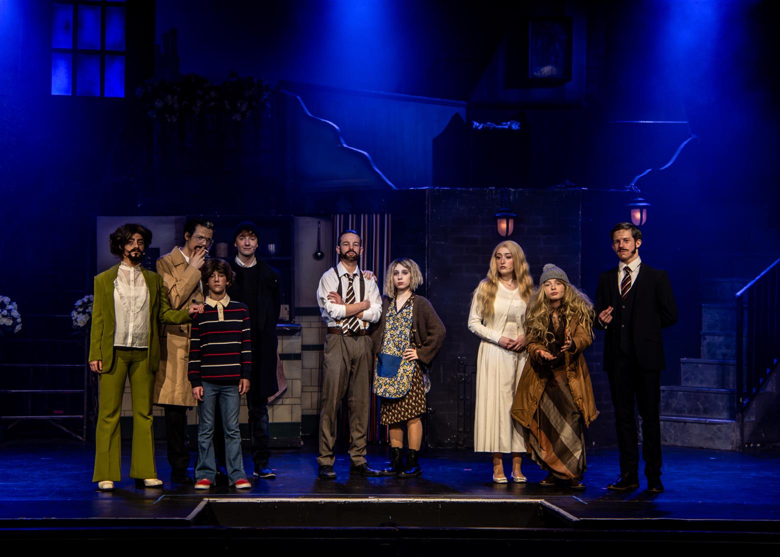 Our director, the redoubtable Miss Worthington, has provided an interesting updating to the original musical. We are first aware of this when waif-like Tobias Ragg (Elena Bleakley) melts the audience’s hearts as the little ‘lost boy’ but is dressed in jeans. Then appear policemen in modern dress, and citizens in 1970s clothes. Very realistic too. One lady was with child, and another had had one, and carried it in a sling. Later in the show, we saw the citizens gossiping about the gory murders and disappearances they were vaguely aware of - the young mother puffing away on her Players No 6 whilst she spoke to her pregnant friend. Very 1970s. The only double acts we had were Mike and Bernie Winters, or Morecambe and Wise. Health n’ Safety hadn’t been invented. It took me right back to the days of not wearing seatbelts and witch’s-hat rides on tarmacadamed park playgrounds. You might be forgiven for thinking ‘Wow. Call the Midwife’s gone very dark all of a sudden. And where’s Sister Monica Joan?’. I loved it. It took me right back to getting on board with The Double Deckers, flares and Afghan coats on Carnaby Street and ‘Treets’, melting in your mouth, not in your hand.