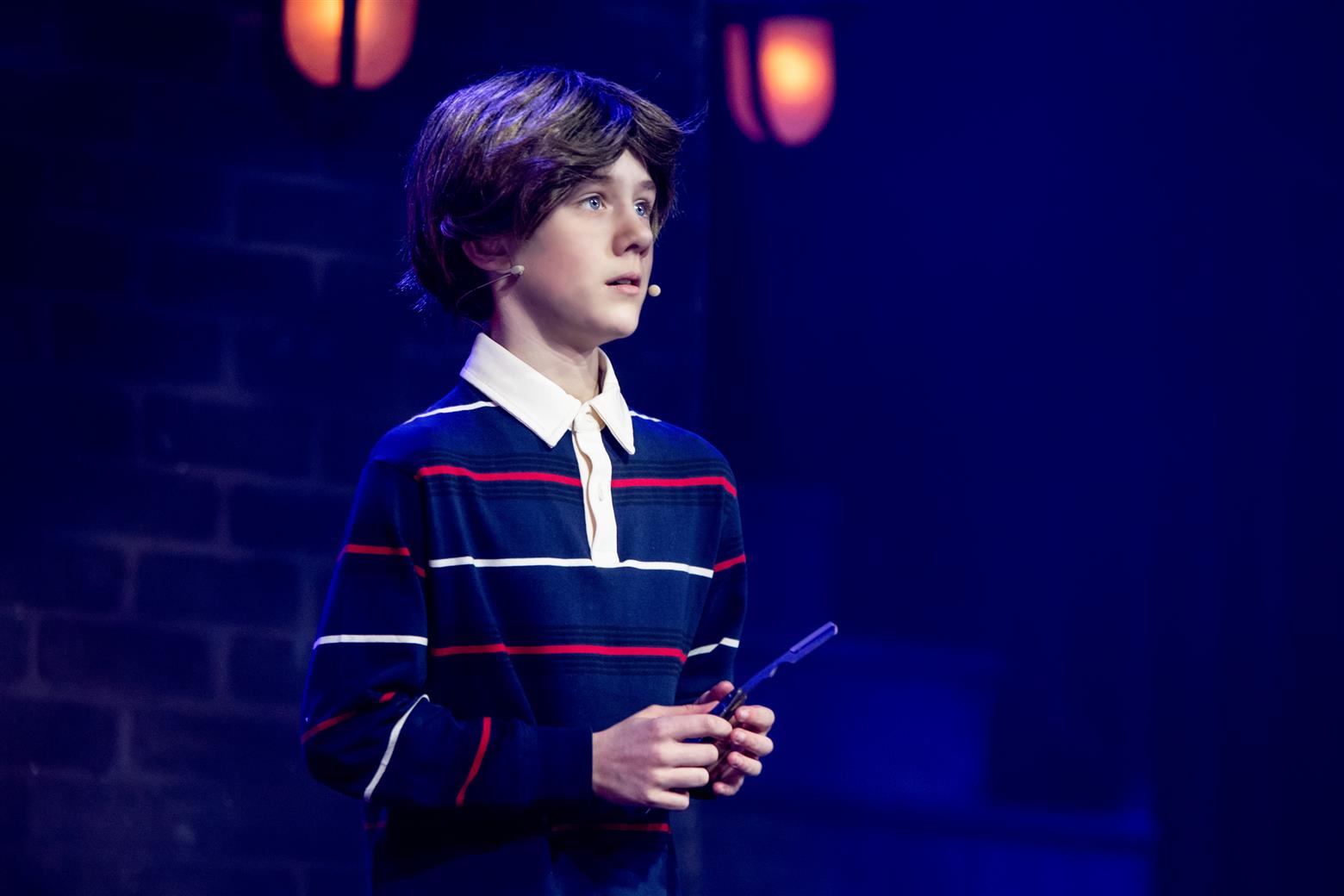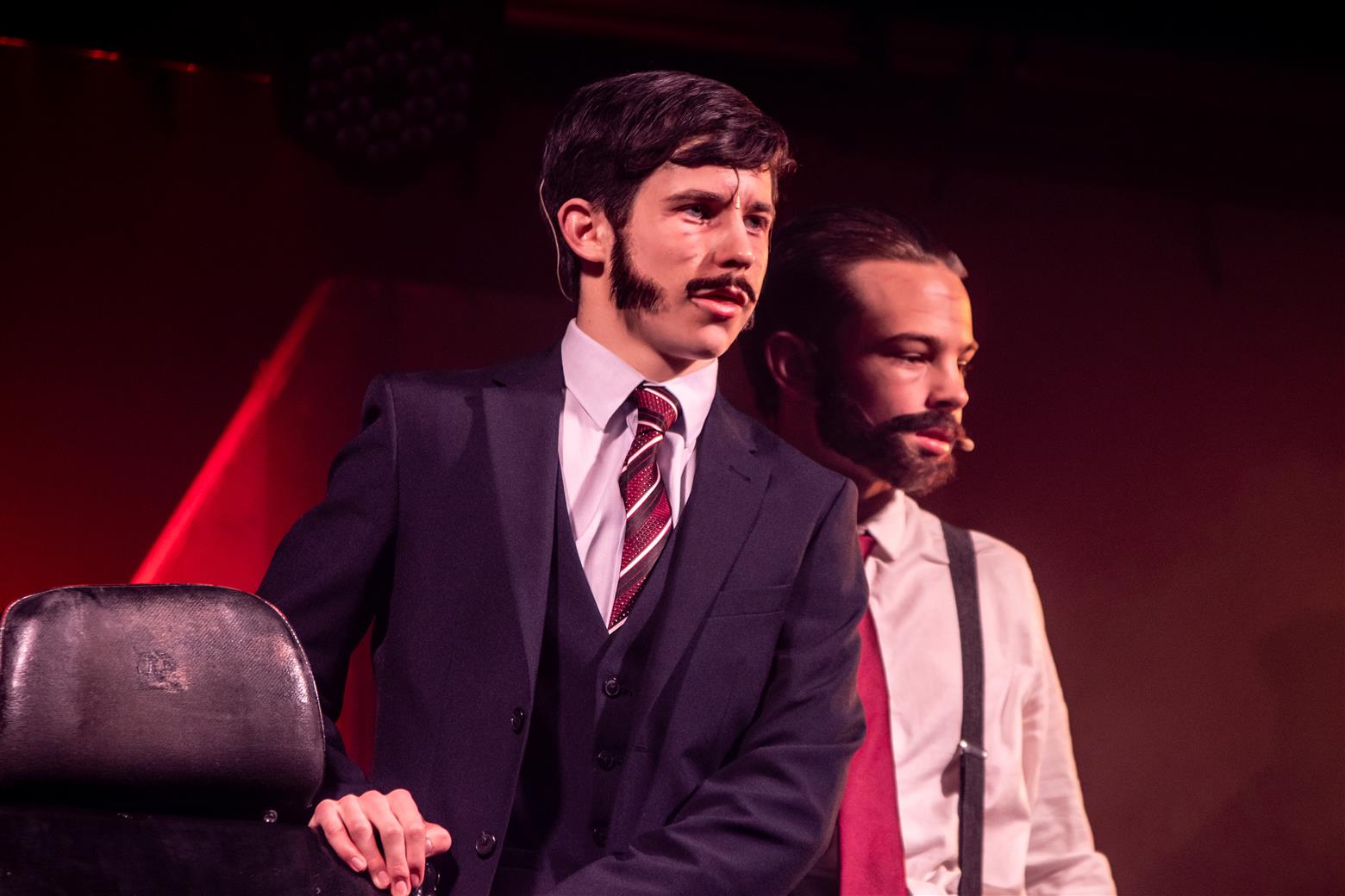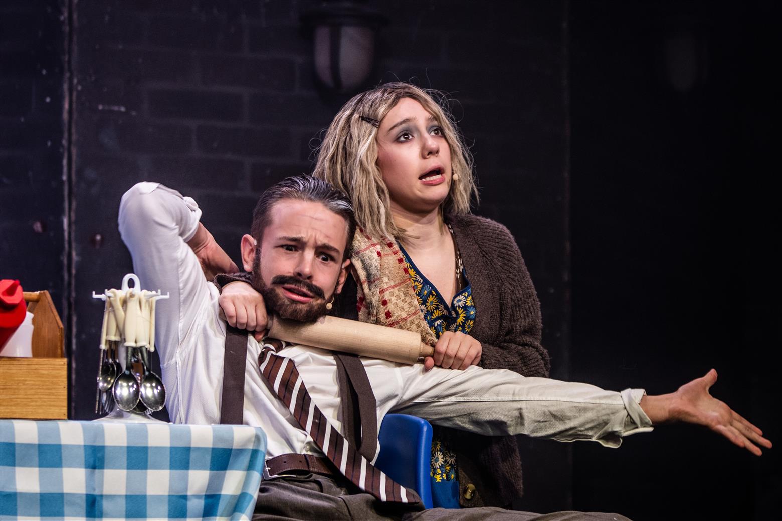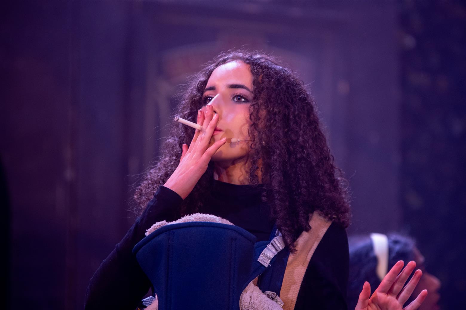 Our director, the redoubtable Miss Worthington, has provided an interesting updating to the original musical. We are first aware of this when waif-like Tobias Ragg (Elena Bleakley) melts the audience’s hearts as the little ‘lost boy’ but is dressed in jeans. Then appear policemen in modern dress, and citizens in 1970s clothes. Very realistic too. One lady was with child, and another had had one, and carried it in a sling. Later in the show, we saw the citizens gossiping about the gory murders and disappearances they were vaguely aware of - the young mother puffing away on her Players No 6 whilst she spoke to her pregnant friend. Very 1970s. The only double acts we had were Mike and Bernie Winters, or Morecambe and Wise. Health n’ Safety hadn’t been invented. It took me right back to the days of not wearing seatbelts and witch’s-hat rides on tarmacadamed park playgrounds. You might be forgiven for thinking ‘Wow. Call the Midwife’s gone very dark all of a sudden. And where’s Sister Monica Joan?’. I loved it. It took me right back to getting on board with The Double Deckers, flares and Afghan coats on Carnaby Street and ‘Treets’, melting in your mouth, not in your hand.