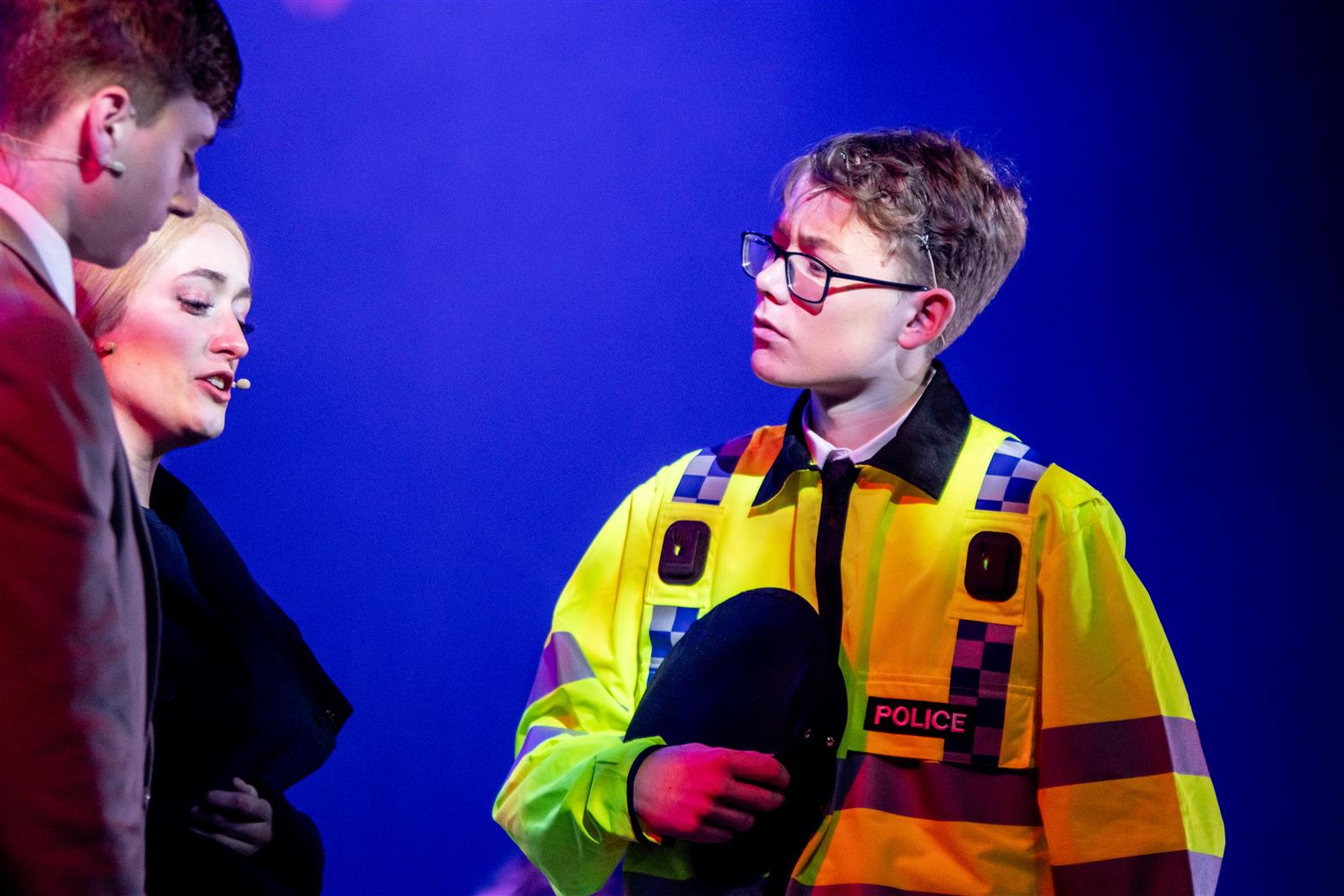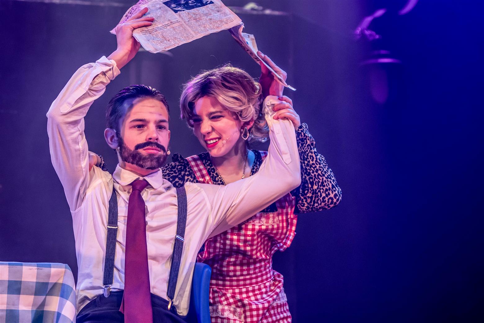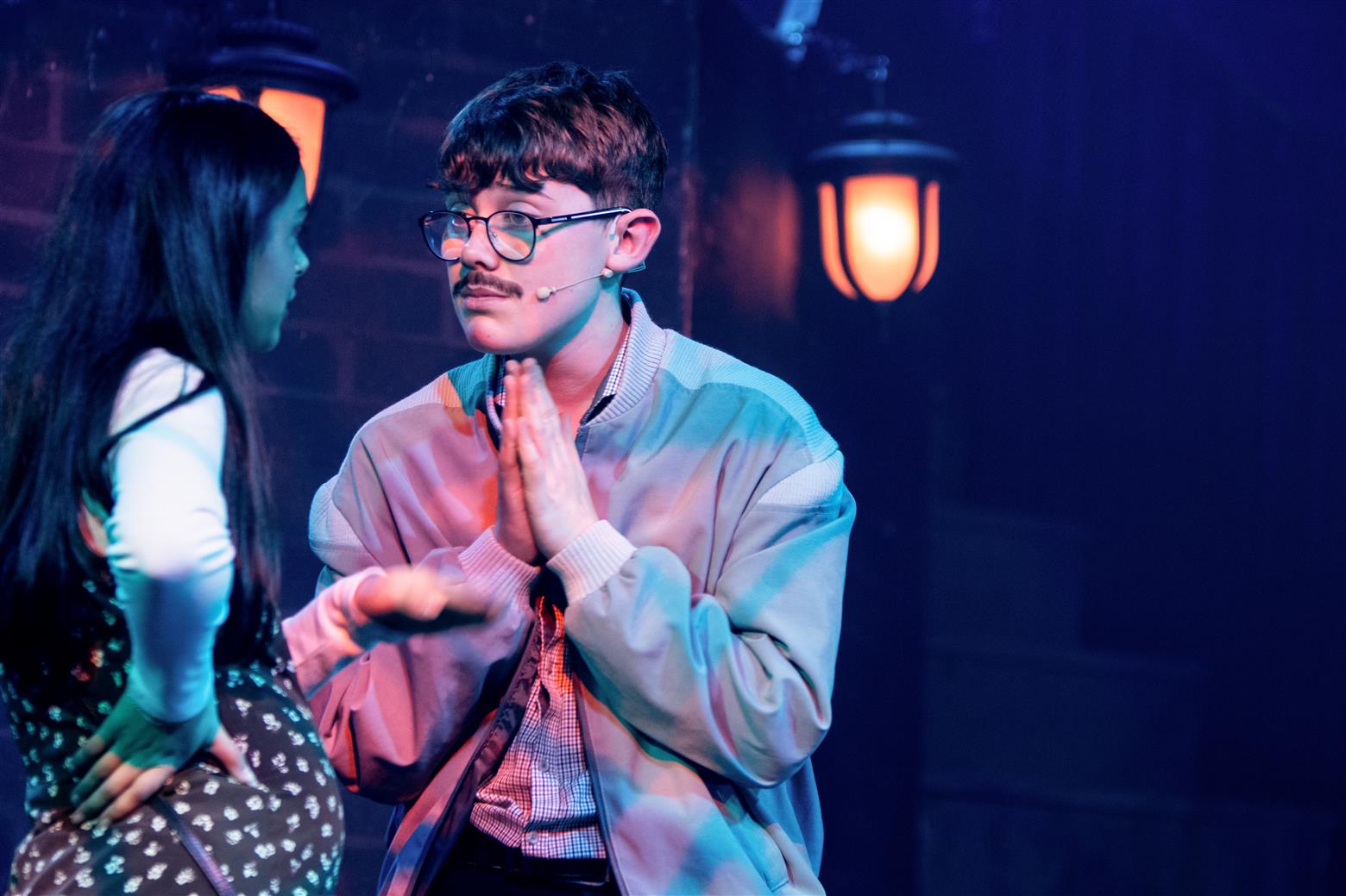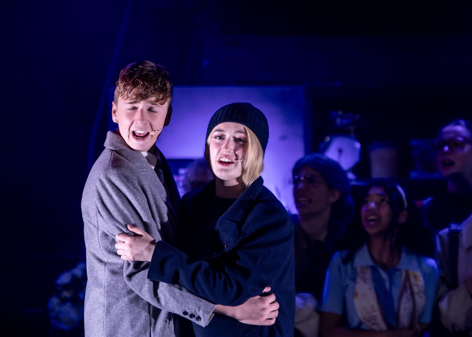 My wife had earlier complained that I had chosen poorly as we tried to access the Lowther Pavillion via the dark inner park-paths rather than freezing on the sea-facing pavements. I had no coat. Not because I am ‘too kool for skool’ but because I am obviously now too old to remember important things. We were confronted by huge MDF boarding, stopping us from accessing the front of the theatre, so had to make our way round, using phone-torches. Yet she soon forgave me when she sat enthralled at her first school musical, remarking to me afterwards that it is sometimes hard to credit that these talented young people are just school students – a testament to all their hard work and the amazing encouragement and expertise of their teachers – of which more later.