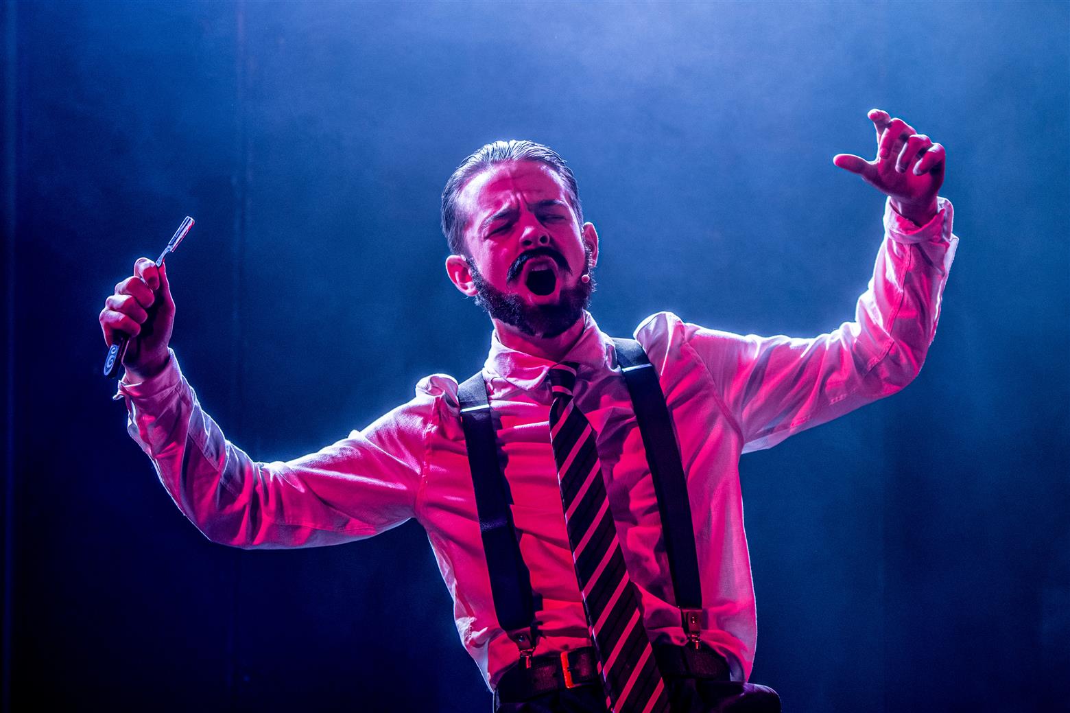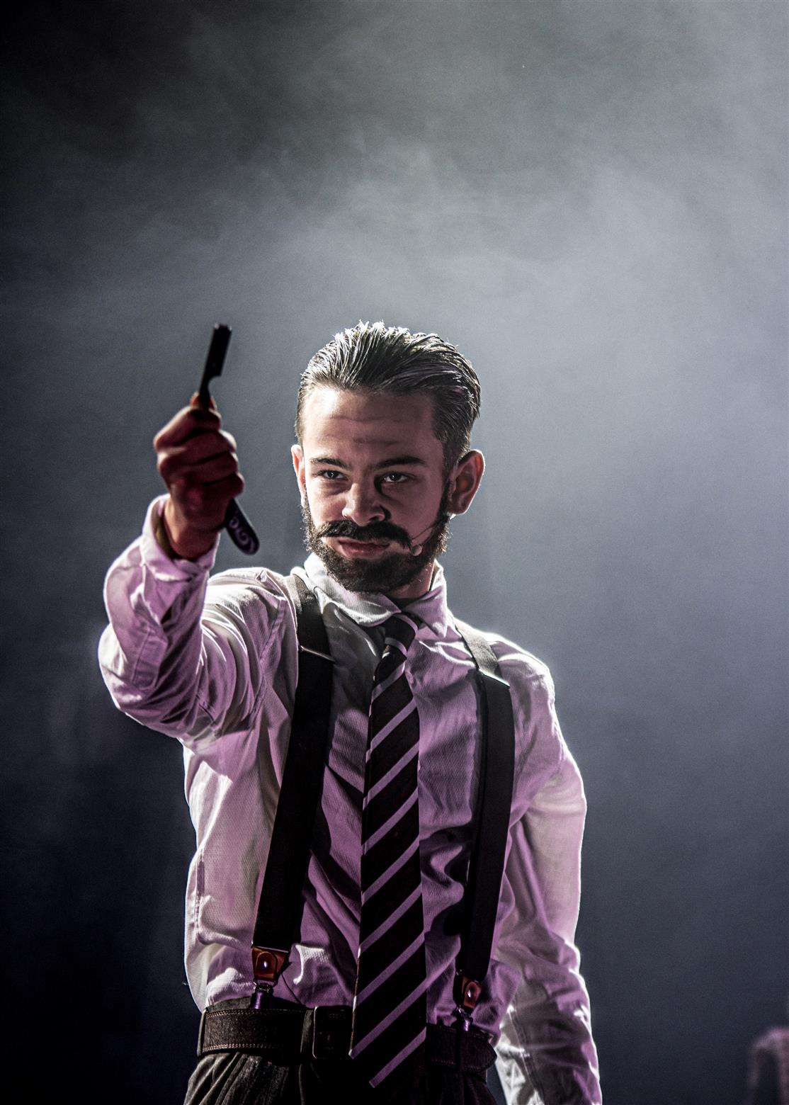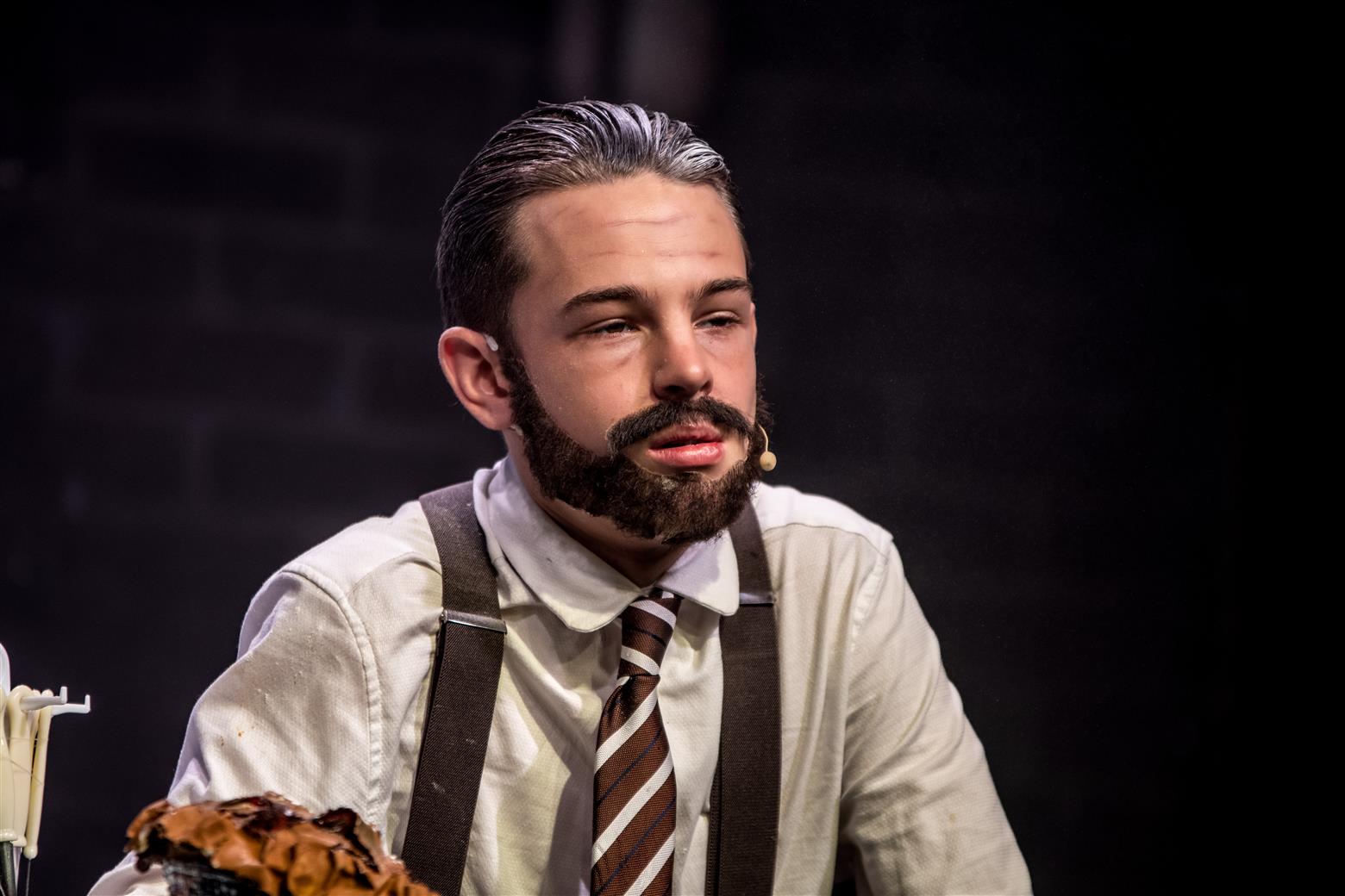 What a good job not everyone is like Sweeney Todd in personality. According to the show notes, he has returned from deportation to ‘take revenge on the corrupt judge who ruined his life’ (fair enough, I guess). And then yet failing to get his revenge, he ‘swears vengeance on the entire human race’. So, he has a take on life both gruesome and decidedly illogical. It was therefore little wonder that Henry Clarkson, as the eponymous anti-hero, spent most of the time angry and sullen - from the bottom of his Captain Haddock beard (very convincing too) to his thickly macassared hair. What a fine voice this young man possesses, and he inhabited his part with a glowering intensity, and highly effective power of expression.