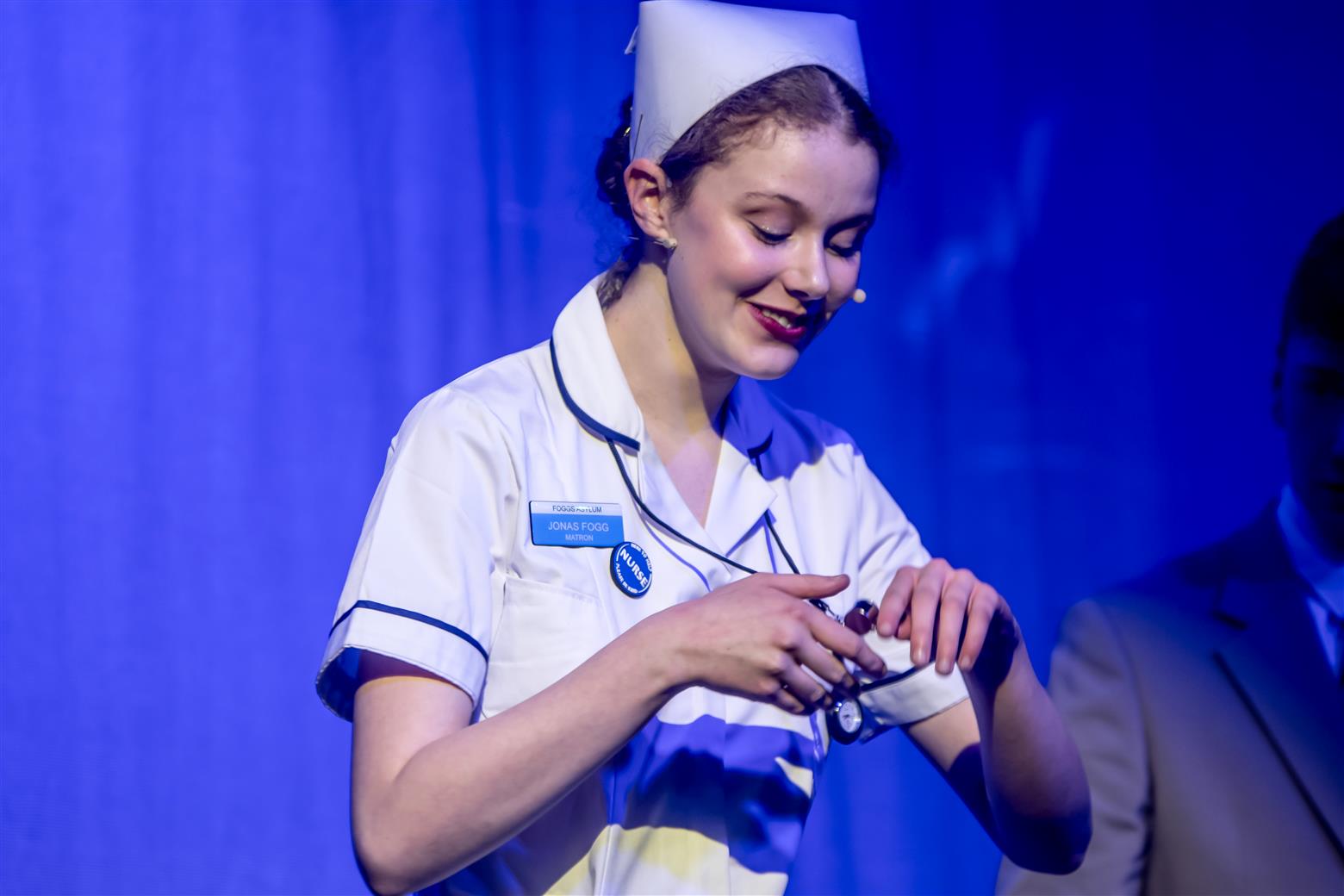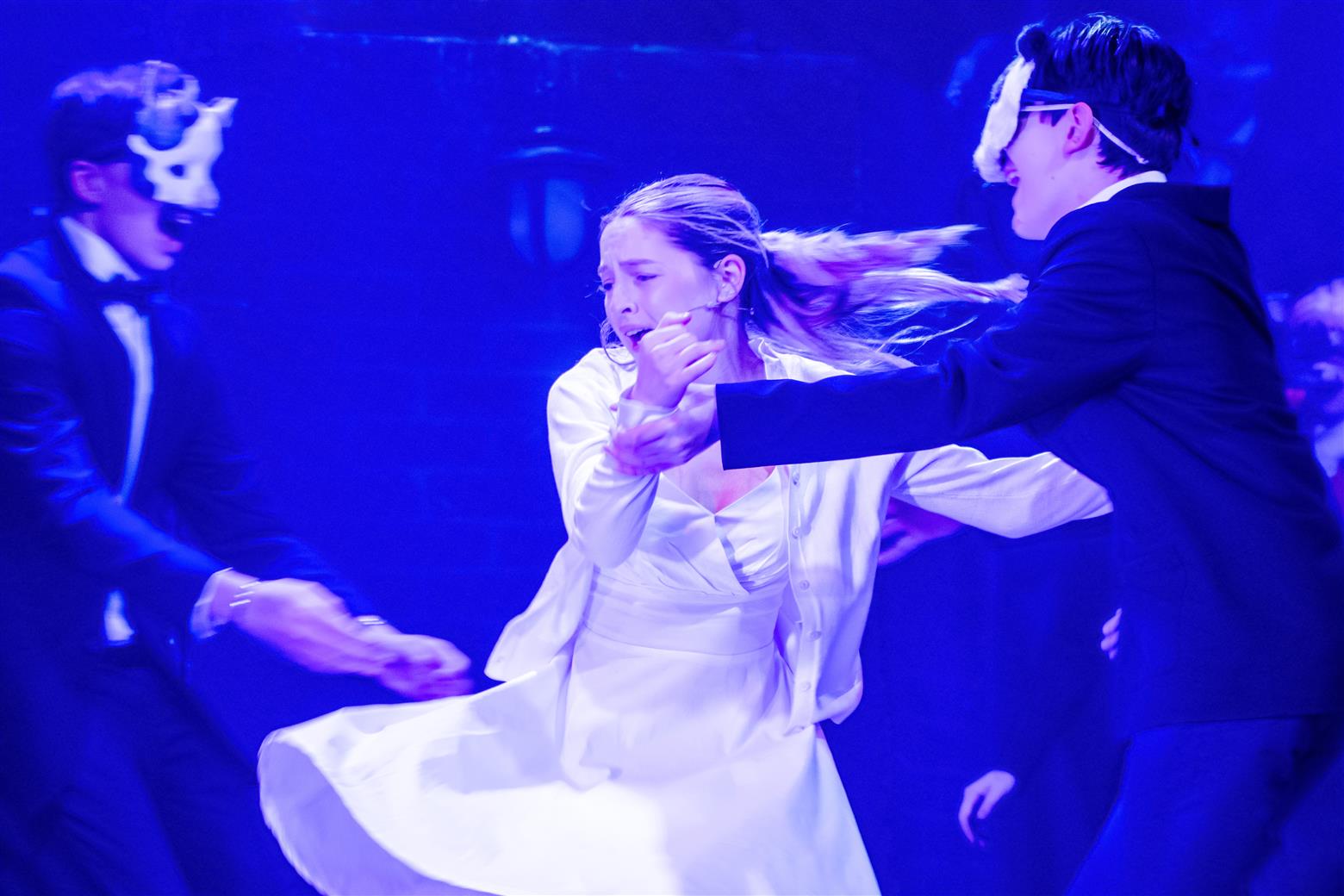 What a difficult score. My wife was puzzled. Is there an orchestra, she asked me? Where is it? It sounds too good. Is it a soundtrack? They were hidden in the pit, but their sound was far from concealed. What an excellent job this was by such talented musicians under the baton of Mr Rugman (well done to him and his team). Speaking of someone hidden, musical director, Mr Hodgkinson spent the entire performance in the audience stalls behind a screen (like a shy bride in some Eastern cultures) but, of course, his expert keyboard accompaniment spoke for itself, as did the result of his expertise in training up the singers to such glorious effect. Mr Brown as assistant musical director assisted Mr Rugman by playing in the orchestra, following many hours working with the ensemble on the highly complex score. Miss Maling provided invaluable choreographic assistance to Miss Worthington, and with her energy and enthusiasm, will have been a fantastic asset. Miss Worthington, we need hardly add, but should, of course, is the linchpin of the whole thing quietly, diligently and tirelessly bringing the cavalcade to brilliant life. All credit to her and all the creative team who supported her.