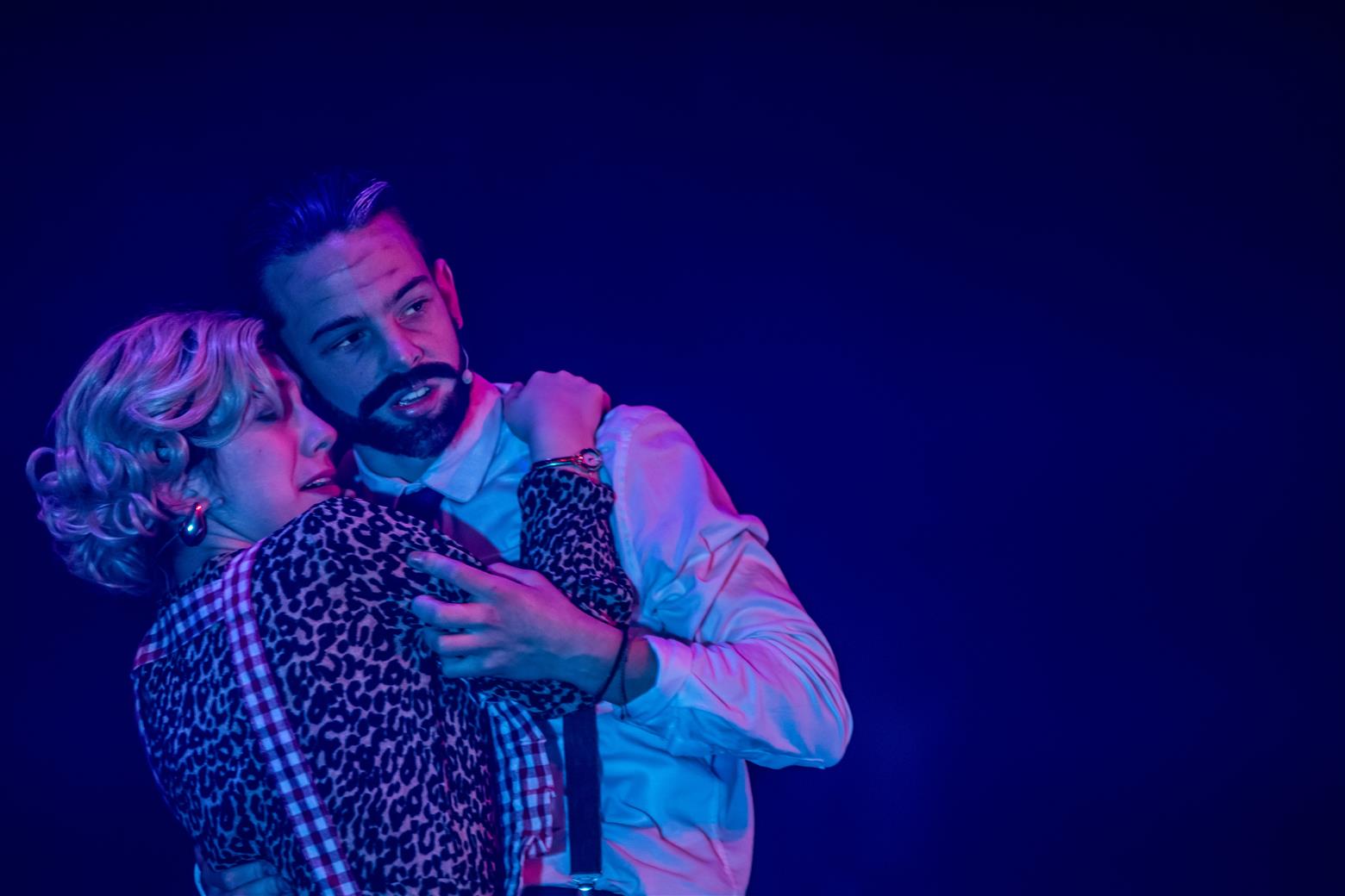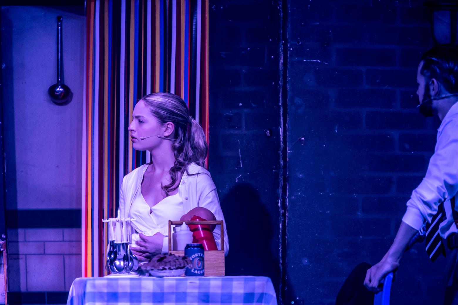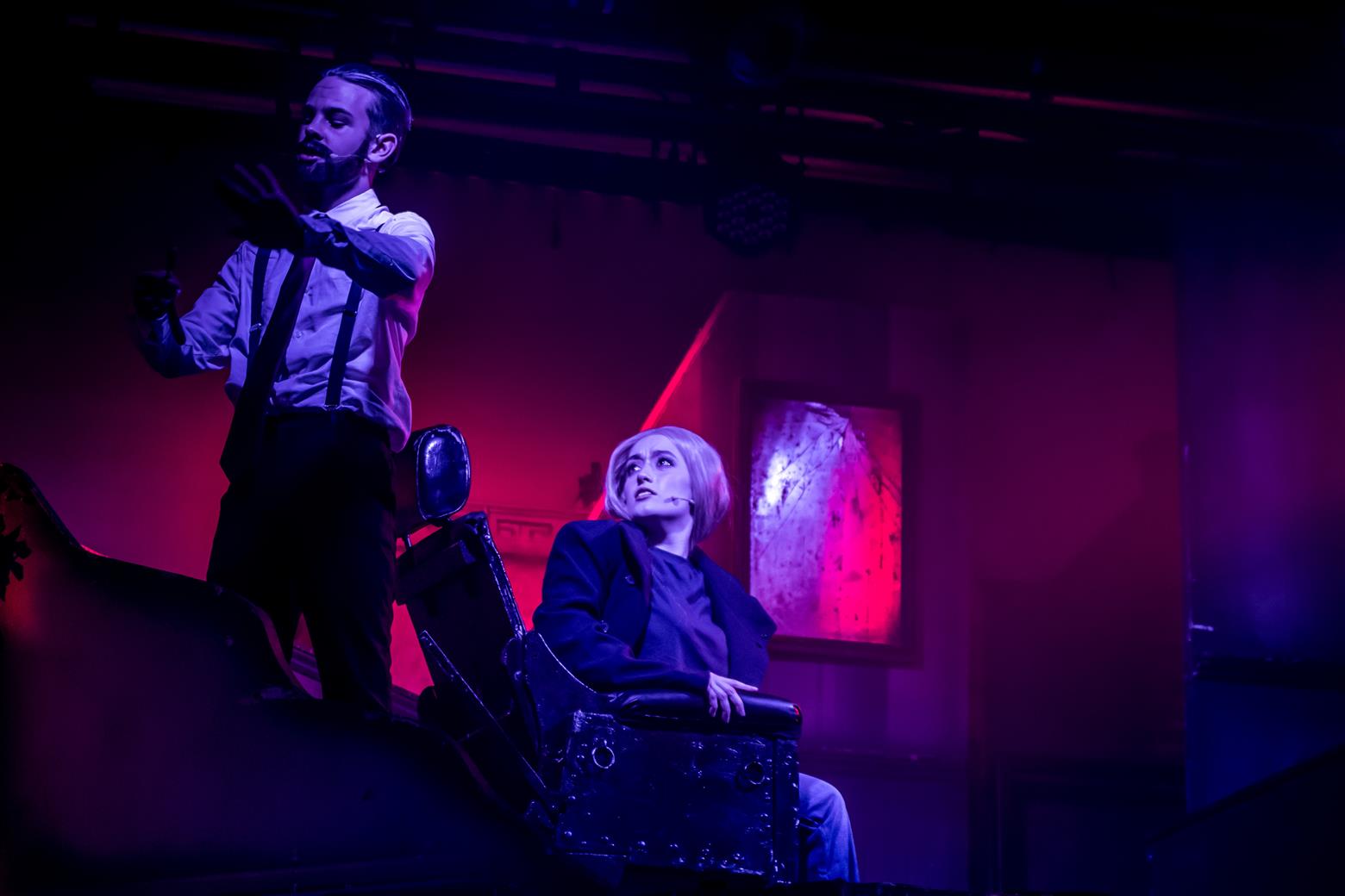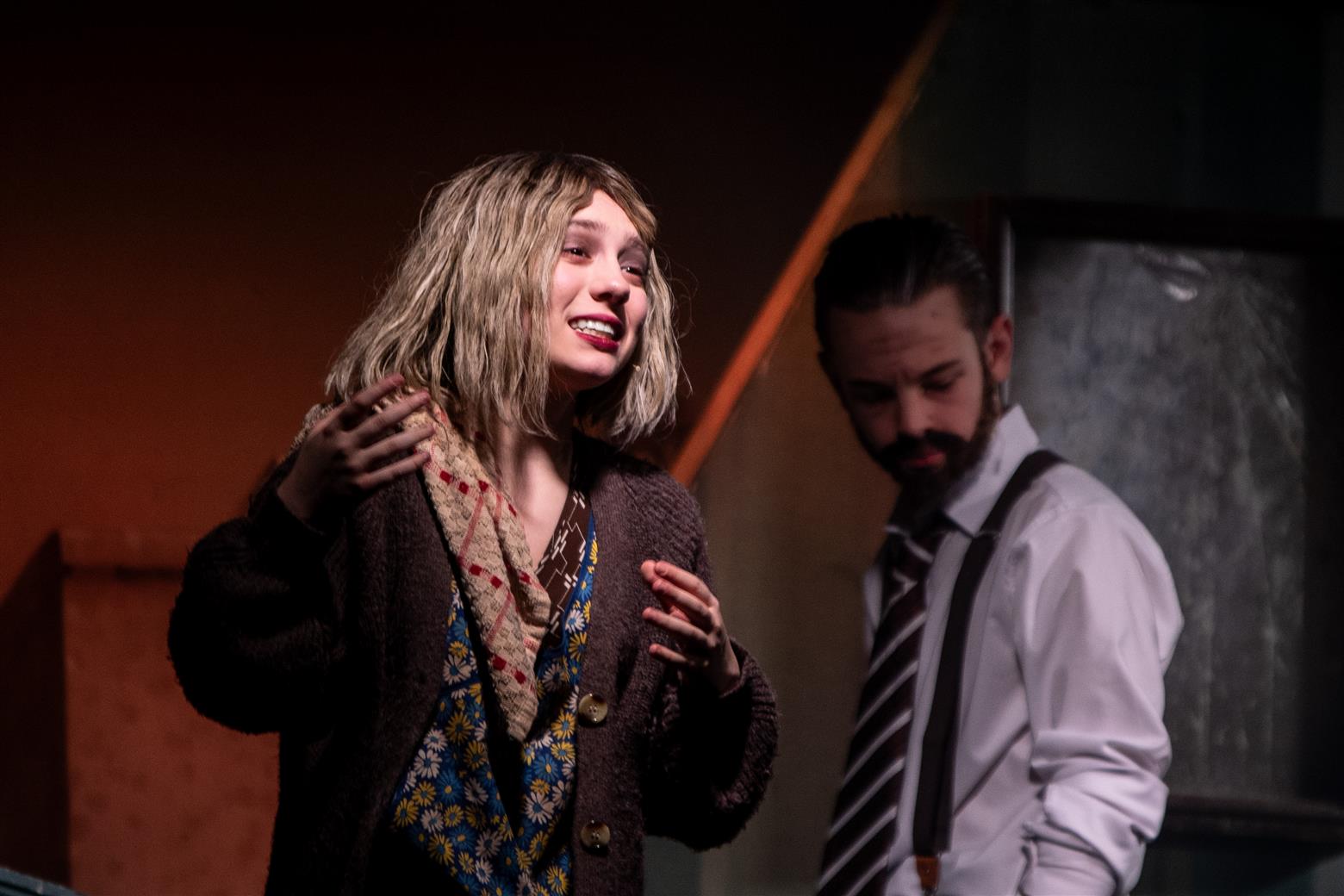 Sondheim’s songs can be challenging to sing, and not always easy for an audience to remember. Some you admire rather than actually like. I think, however, that the repetition of those numbers will mean that the cast are now big Sondheim fans because the songs grow on you, always the sign of a sophisticated type of aesthetic. Yet there are good earworms and beautiful melodies, not the least of which is ‘Green Finch and Linnet Bird’ in which the beautiful flaxen-haired Johanna (Sammy Coffey) leans out of the window to hear the notes of the birds sold by our cheerful cock-er-nee costermonger, the Birdman of – perhaps Aldwych - rather than Alcatraz, played by Samuel Brown. Young Anthony spots the fair maiden, and a love affair begins. He rescues his amour from the lunatic asylum later on – a benighted institution where the so-called ‘mad’ inmates are exploited for their locks by wigmakers who are paying the evil jailer, Matron Fogg, menacingly played by Jen Romer in full Nurse-Ratched rig-out, in keeping with the 1970s vibe. Act Two opens with a touching, plaintive ballad ‘Johanna’ sung by Anthony, calling her name as he seeks her. I tried so hard not to think about Kool & The Gang.