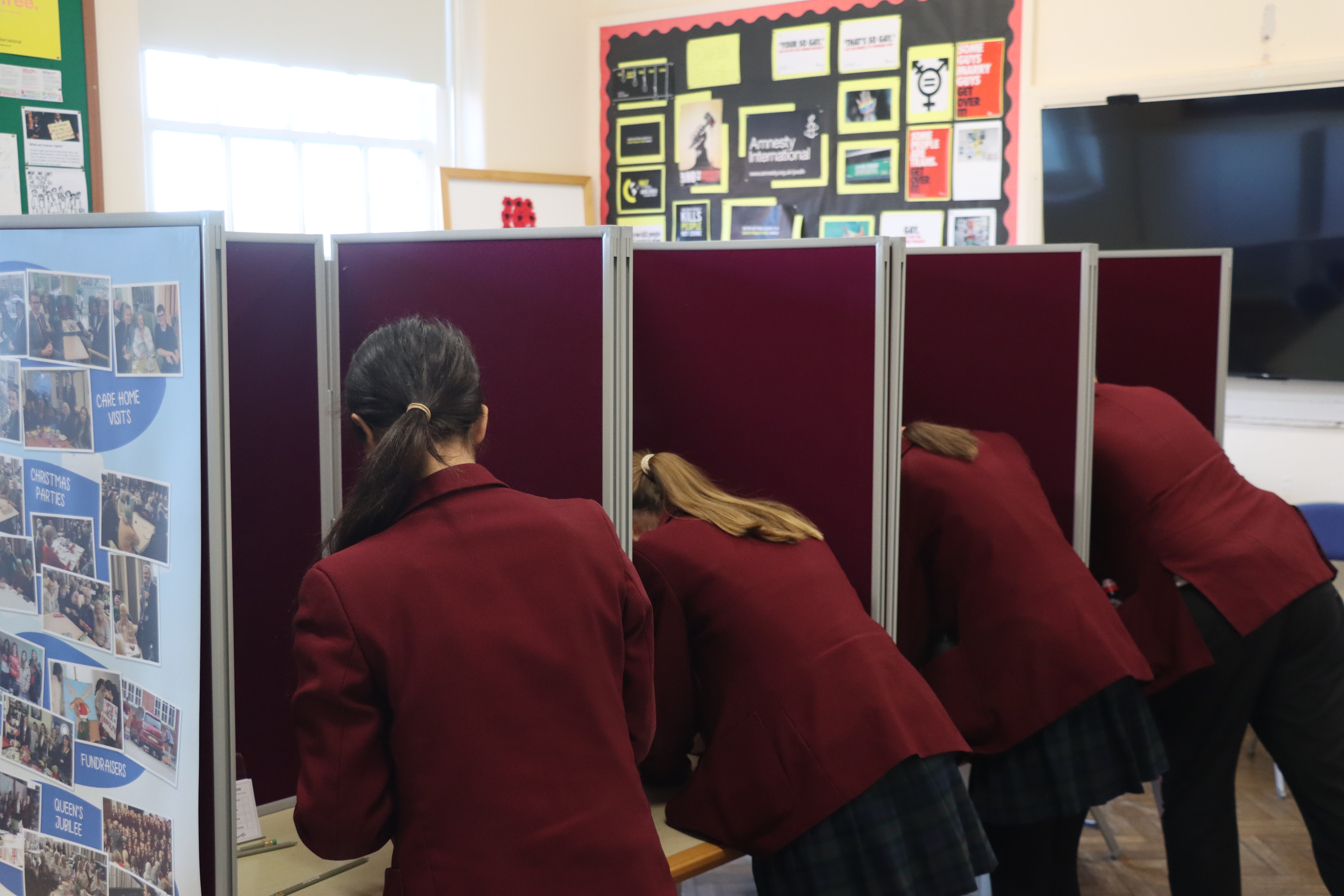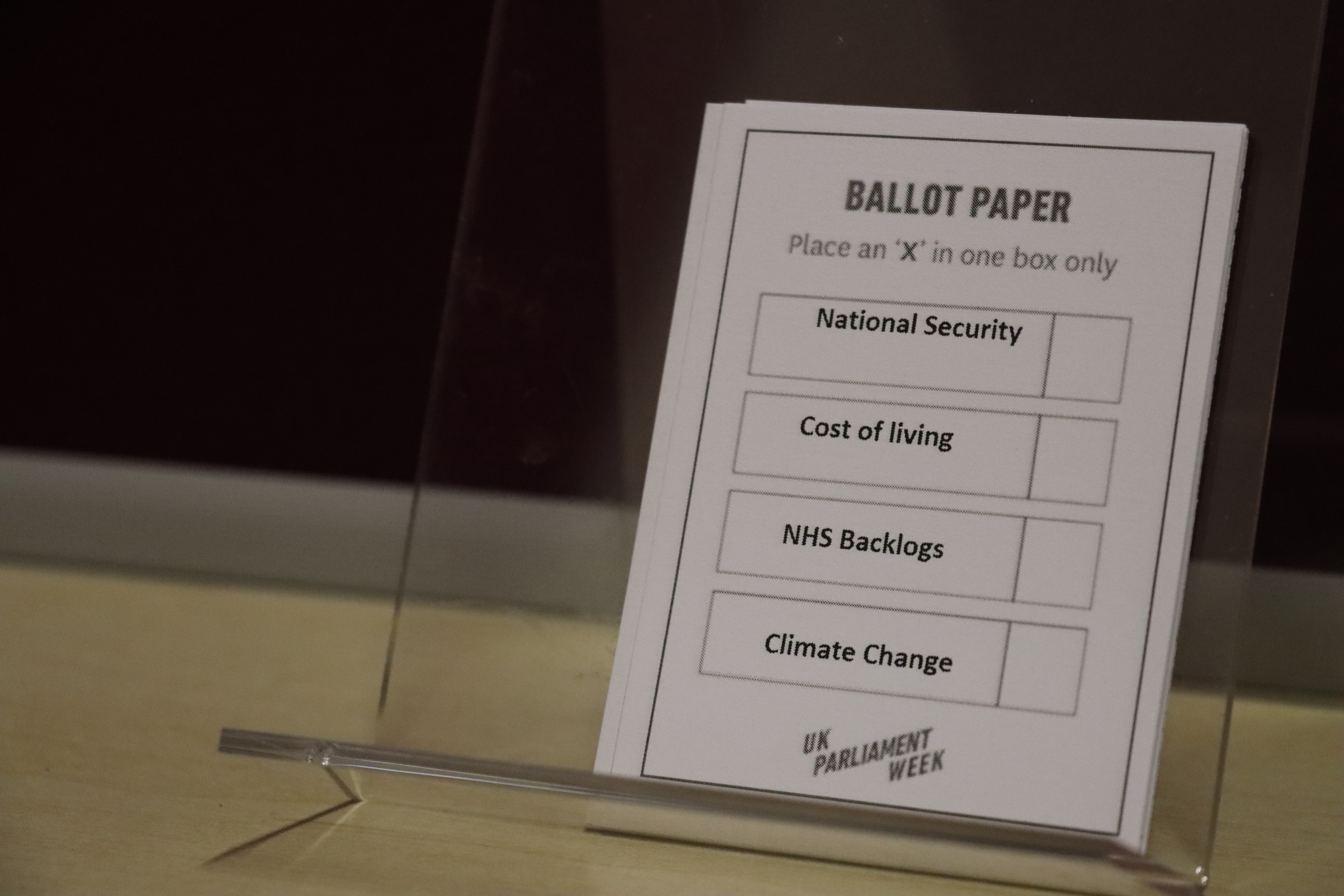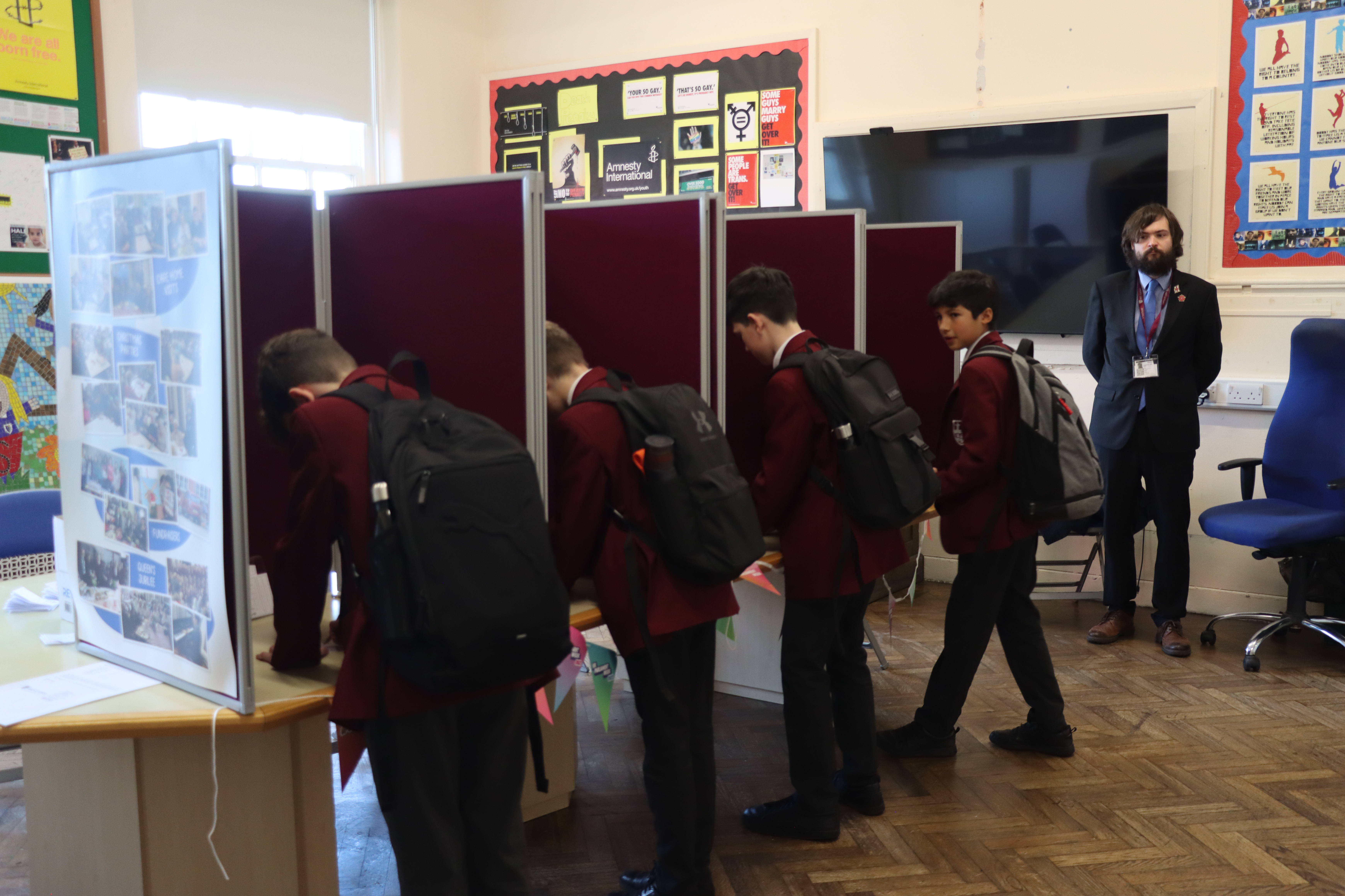 The day began with a video created by the students, who debated the question: “What is the most urgent crisis facing the UK Government today?” Their arguments focused on four key national issues: national security, the cost of living, NHS backlogs and climate change. After watching the debate, students headed to the polling booths to cast their votes for the issue they felt should be the top priority.