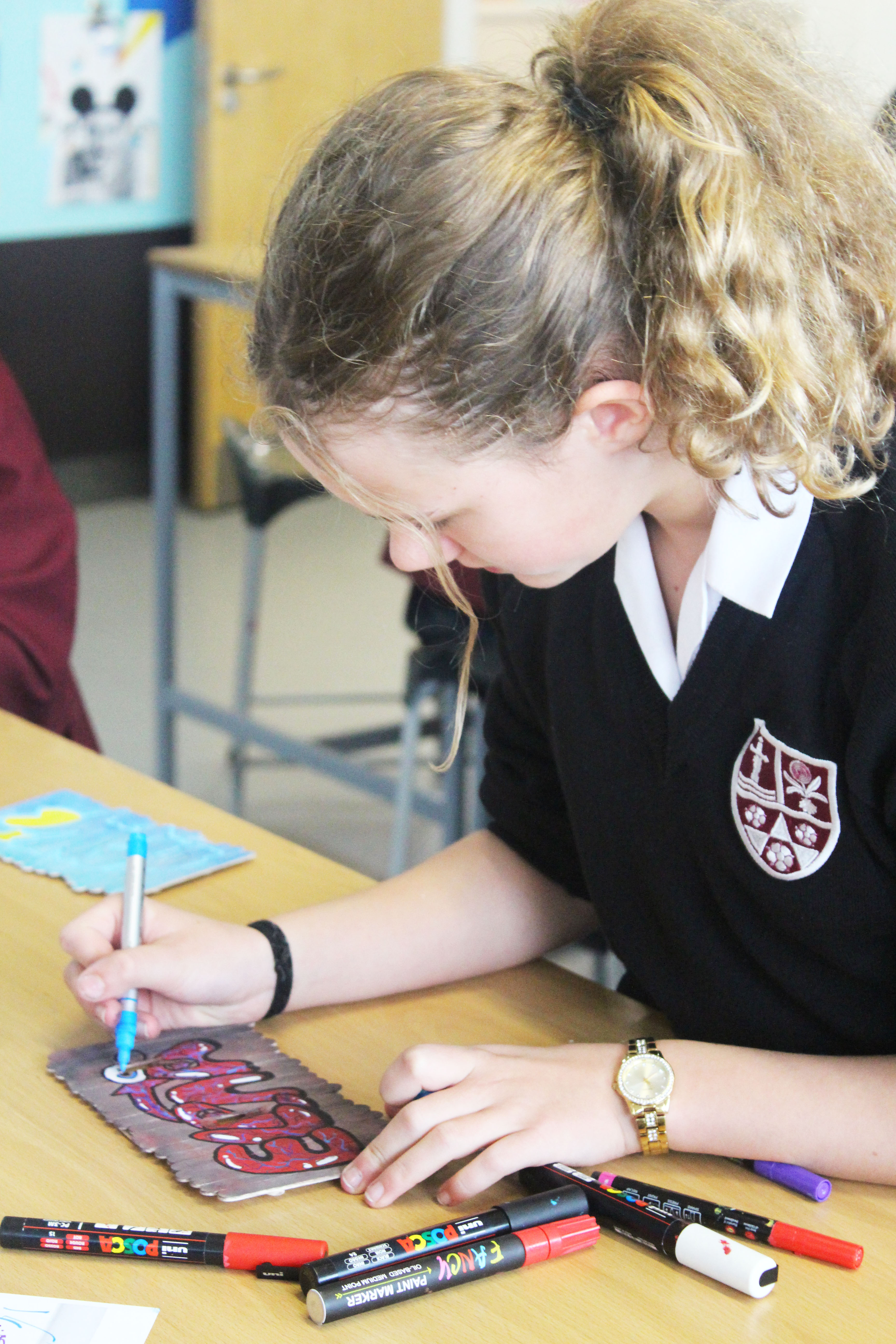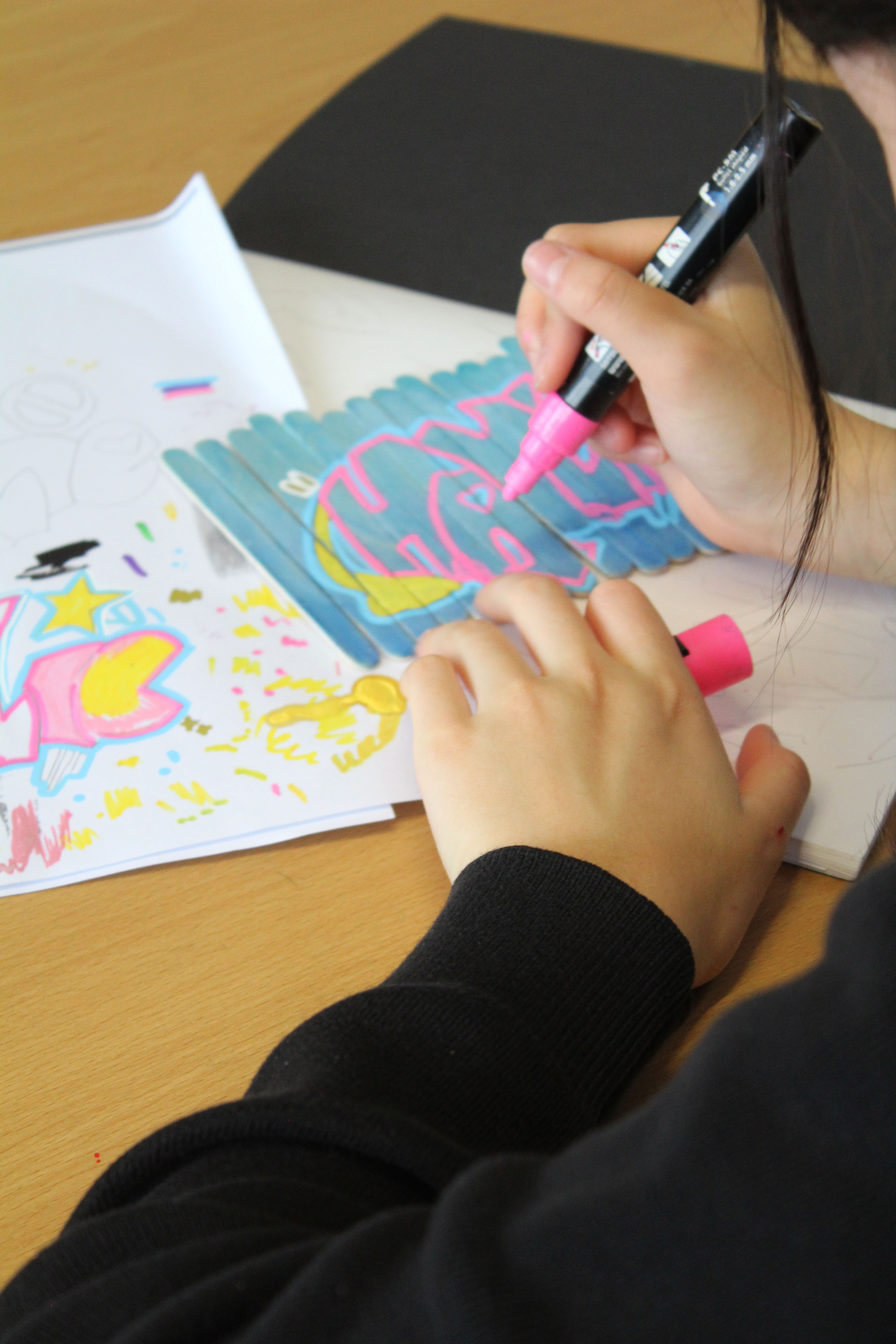 This term, Year 8 pupils have immersed themselves in the energetic and expressive realm of graffiti art, taking inspiration from the bold visuals and inventive styles found in street art. The project invited students to look closely at the language of graffiti, its colours, forms, textures and symbols, and consider how artists use these elements to communicate mood, identity and message.